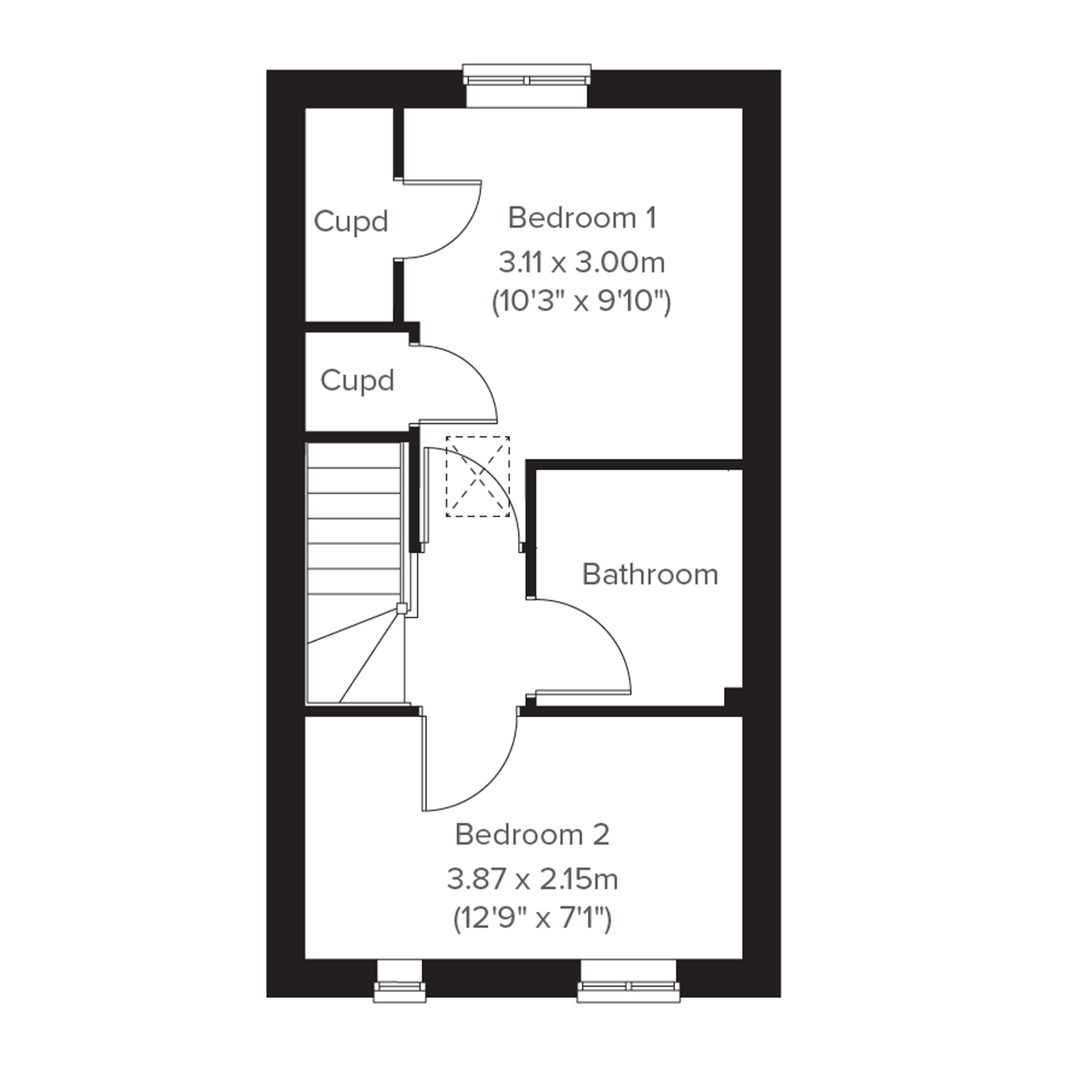 The Ashdown Corner has the bonus of dual-aspect windows on all three floors. The accommodation is just the same, practical, flexible and family-friendly.