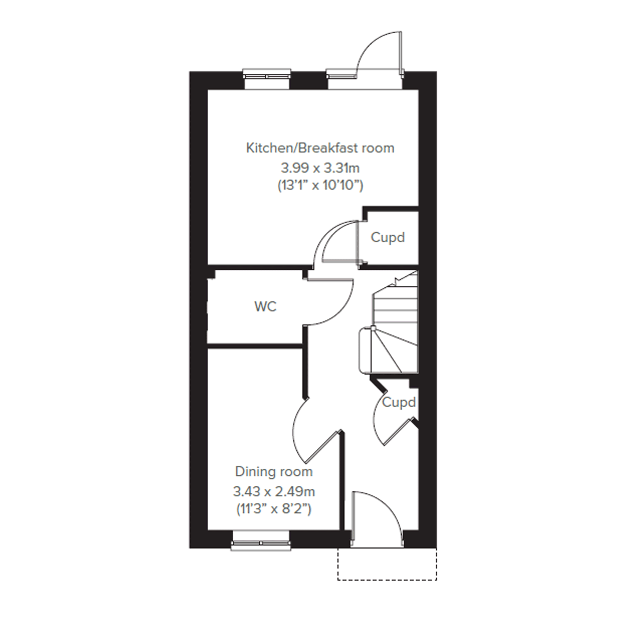 The Wolvesey is a four-bedroom home with a practical ground floor layout that includes a kitchen/breakfast room, WC, storage cupboard and a dining/family room.