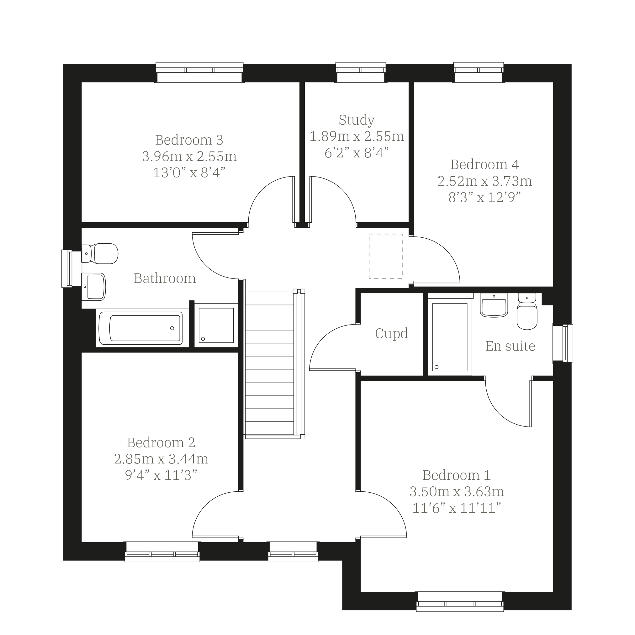 The Lancombe has the contemporary features of an open-plan kitchen/family room and bi-fold doors to the garden, and the traditional features of a separate living room, dining room and garage. It offers the perfect balance for family life and for entertaining. The first-floor layout includes four bedrooms, a bathroom, en suite and a study.