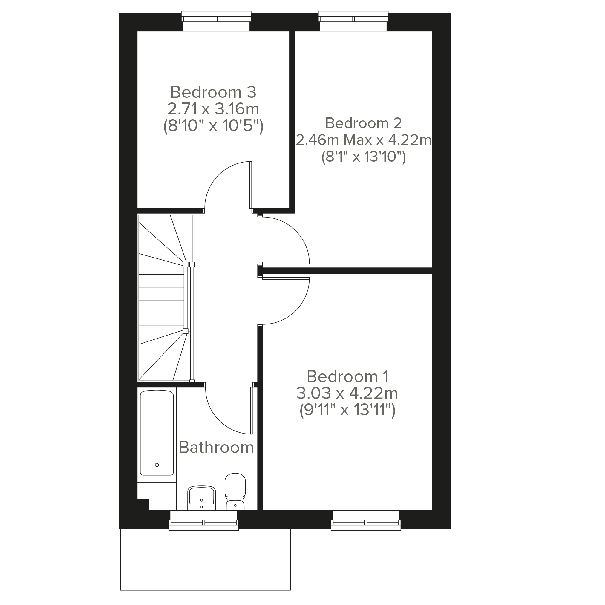 A beautifully-proportioned three-bedroom home, the Medler has everything you need for modern living. Downstairs theres an open plan kitchen/dining/living room with French doors leading into the garden, two large storage cupboards and a WC. The first floor is home to three bedrooms and a family bathroom.