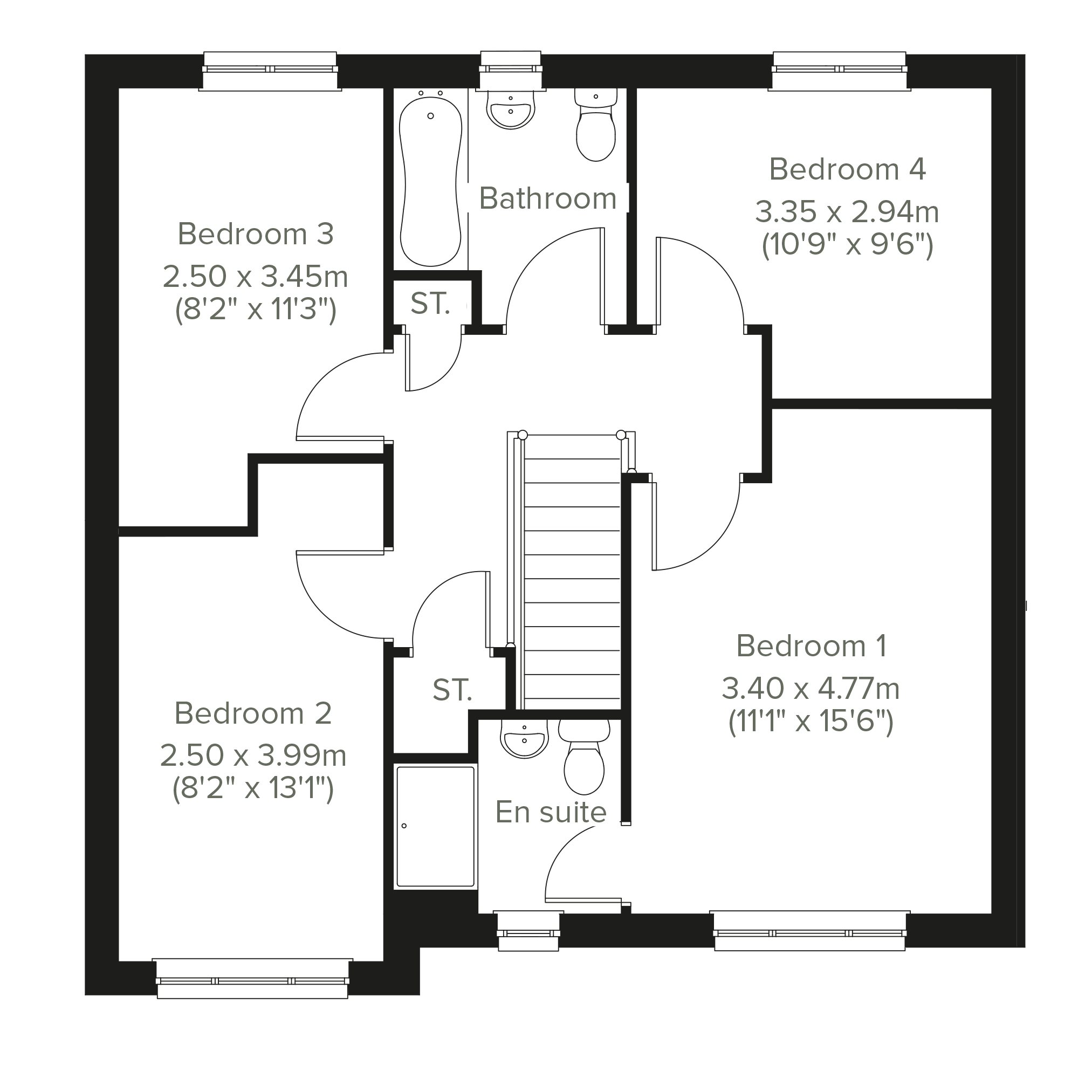 The Thornton is a four-bedroom detached family home with an integral garage. The ground floor layout includes a lounge, kitchen/dining room which leads to a utility room with outside access and a downstairs WC. Both the kitchen and the utility room have direct access to the garden. Upstairs there are four good-sized bedrooms. Bedroom one has its own en suite and the other bedrooms share the family bathroom, plus there are storage cupboards throughout the home.