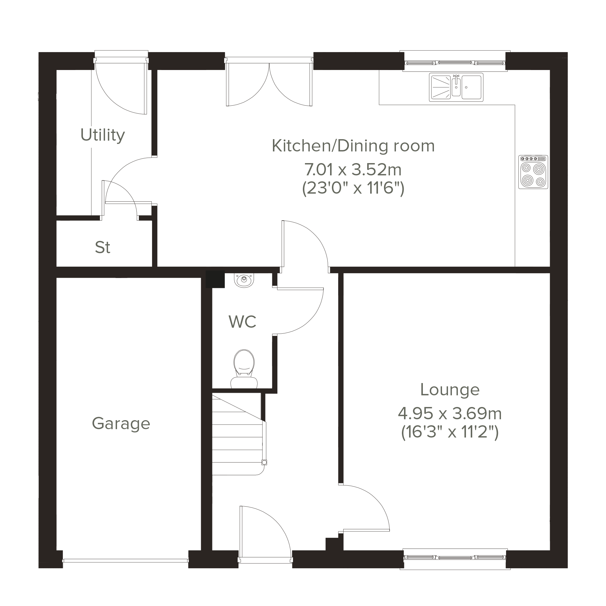 The wonderful Warriston is the perfect family home for larger families, with five bedrooms, an abundance of space, plus the added benefit of an integral garage. This home offers the best of modern living. On the ground floor, the Warriston features a front-aspect lounge, large kitchen/dining room with access to the rear garden, separate utility and cloakroom. Upstairs, there are five good-sized bedrooms. As well as the master having an en suite, there is a Jack and Jill en suite shared by bedrooms two and three and a separate family bathroom.