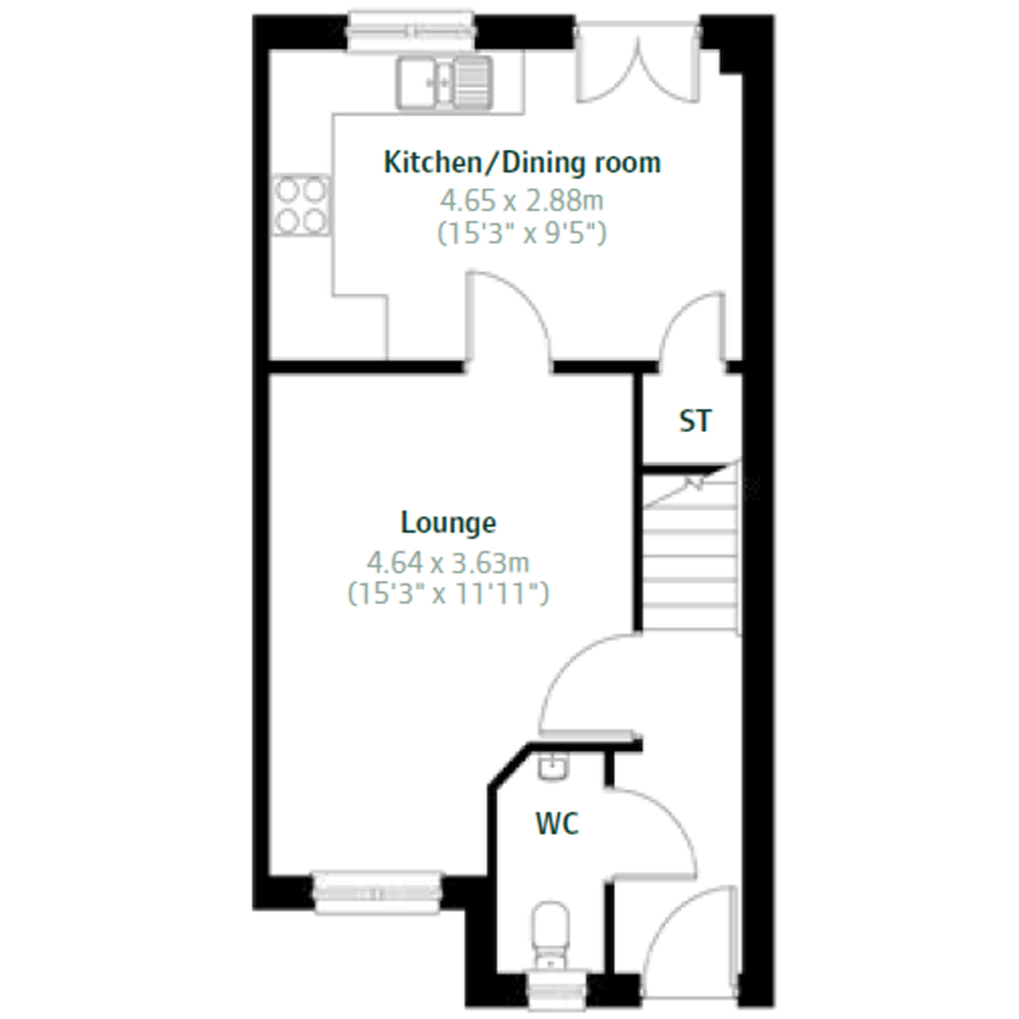 The Dunblane features a stunning open-plan kitchen/diner with French doors opening into the garden and a separate lounge. Theres also a WC and two storage cupboards.