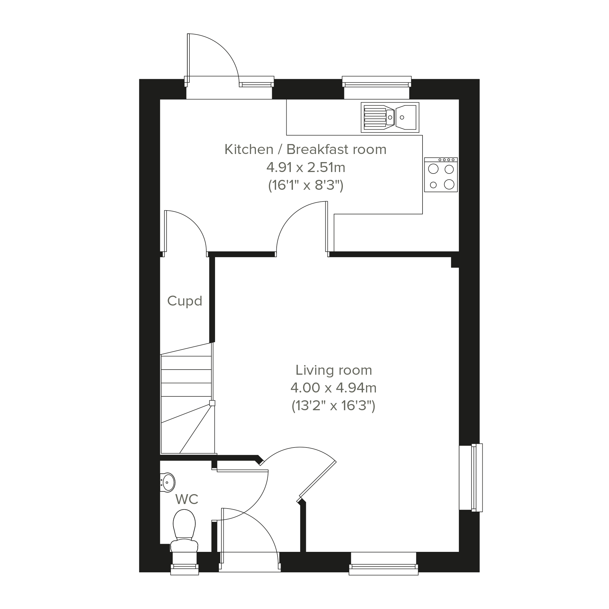 The Danbury has a lovely natural flow that leads you through the living space. The hallway opens into the living room, the living room into the kitchen/dining room and the kitchen/dining room into the garden. This is a new home that will suit first-time buyers, young professionals, and the comings and goings of friends and family.