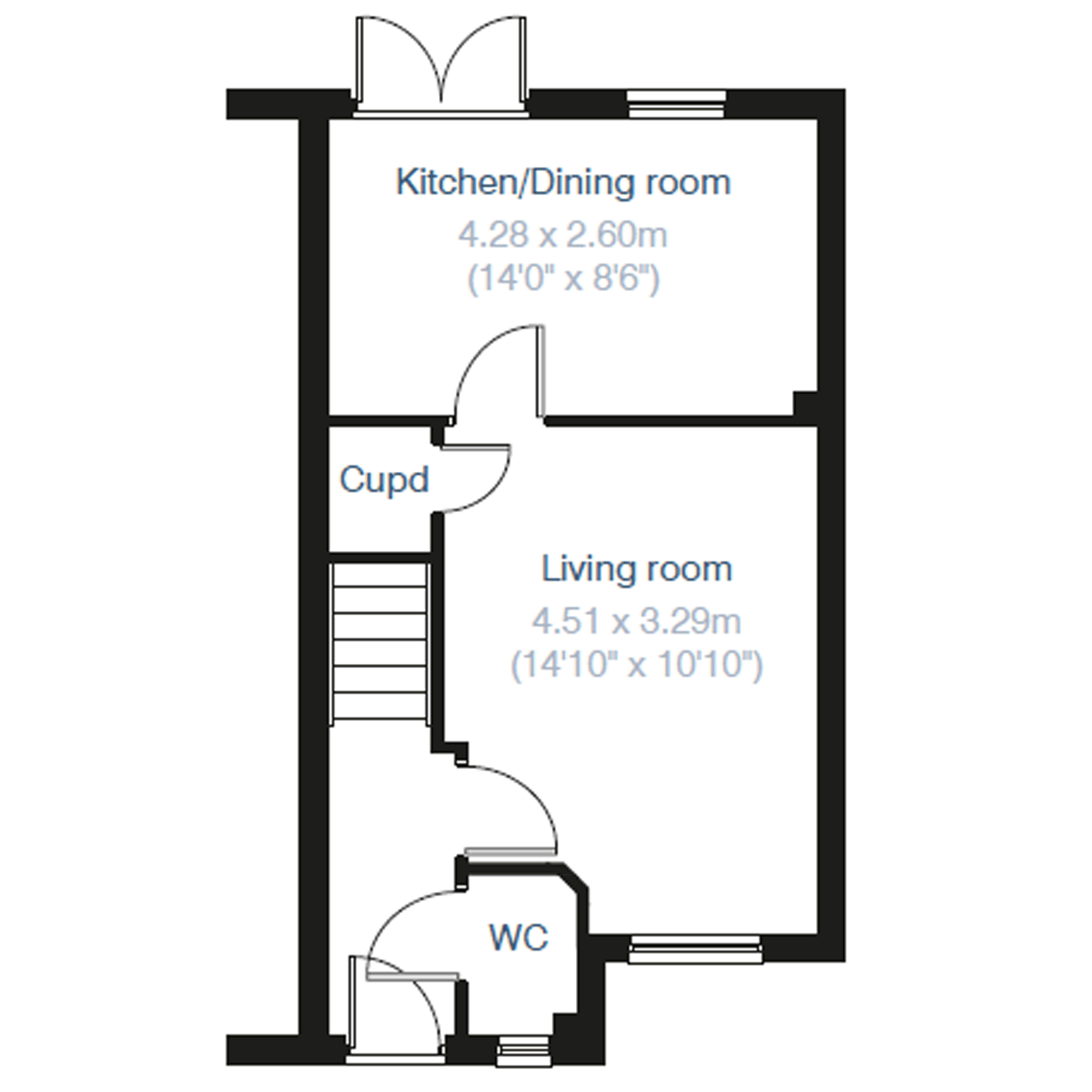The Trafalgar is a well-designed, semi-detached home with two bedrooms and two bathrooms. From the entrance hall you step into the living room and from there into the open-plan kitchen/dining room. This lovely light room has French doors to the garden. Upstairs, one of the bedrooms has its own en-suite and the other has use of the separate bathroom. Storage cupboards on both floors are a practical bonus.