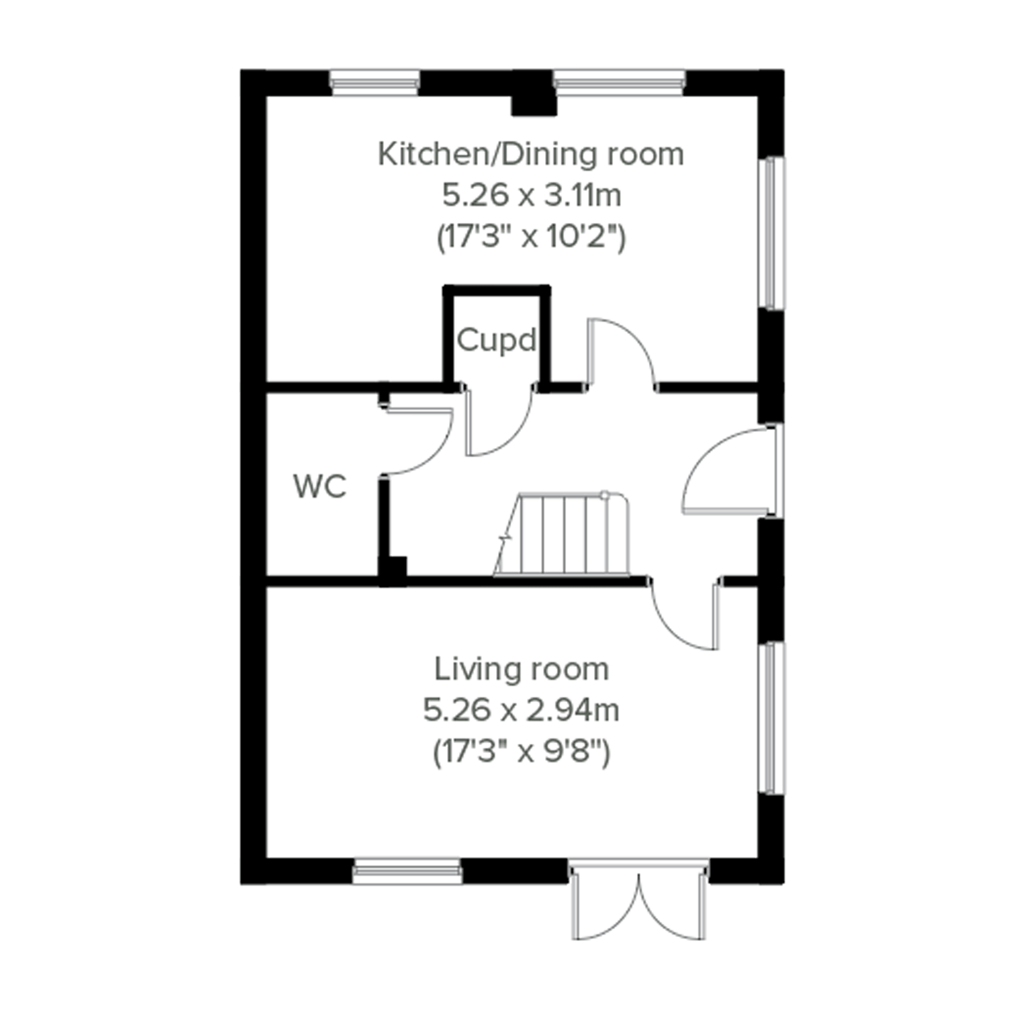 The 3 bedroom semi detached Solway enjoys an open plan kitchen/dining room with French doors leading to the rear garden, bed 1 having an en suite downstairs WC