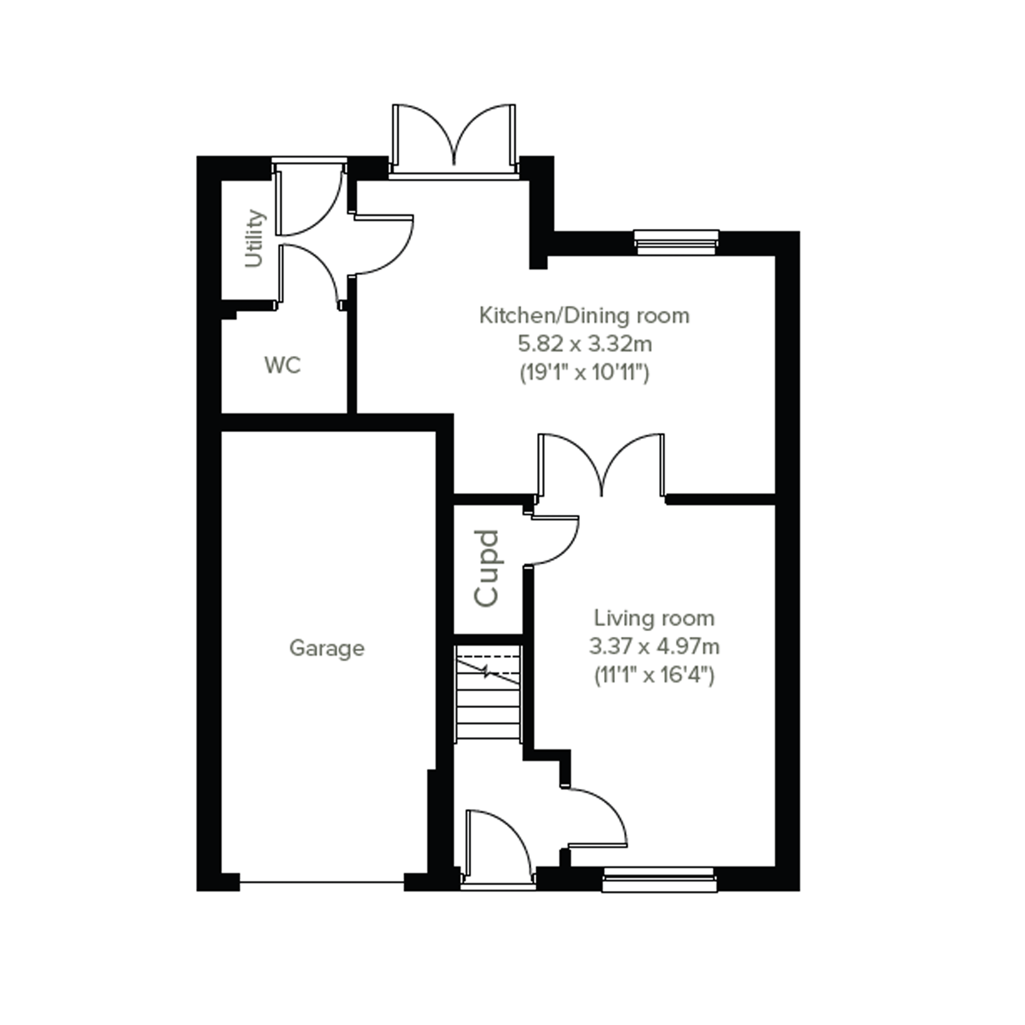 The Marston is a four-bedroom detached home. The kitchen/diner has French doors to the rear garden, theres a front-aspect living room, a downstairs WC, storage and a garage.
