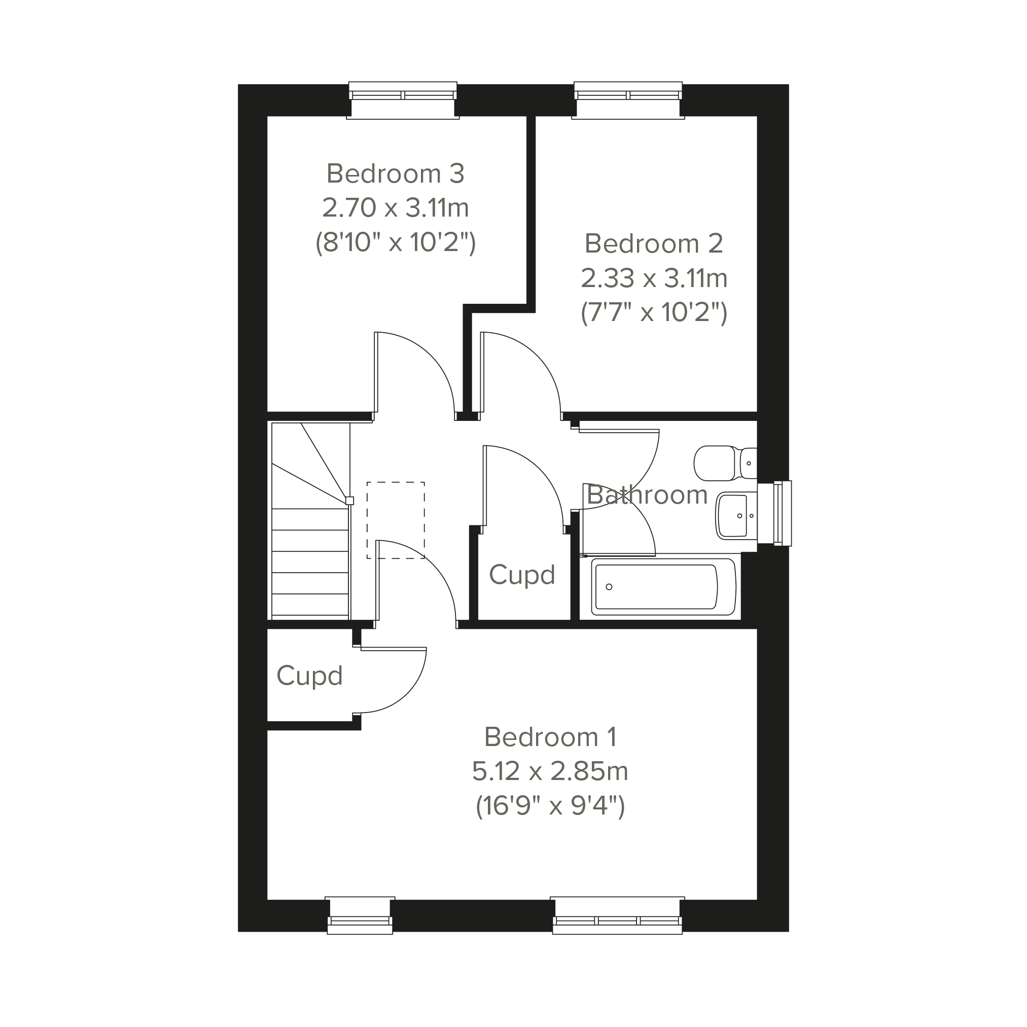 - Council tax band: Not made available by local authority until post-occupation