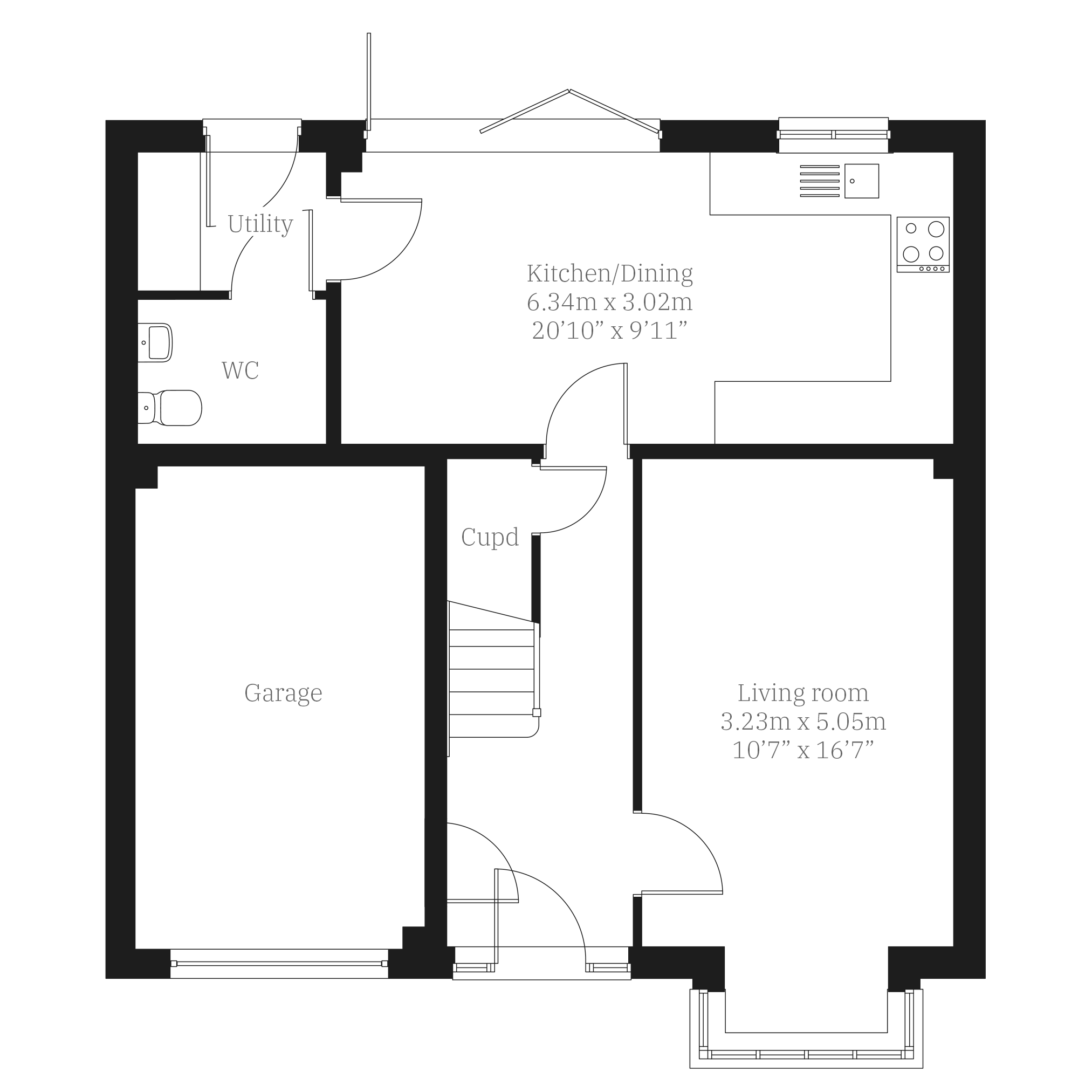 The Carradale gives you four bedrooms and three bathrooms. Its an ideal growing, and grown-up, family home. An integral garage makes it a practical choice too. The kitchen/dining room leaves separate space for a utility room with a useful back door, while the main access to the garden is enhanced by the bi-fold doors. This is a new home with function and appeal in equal measure.