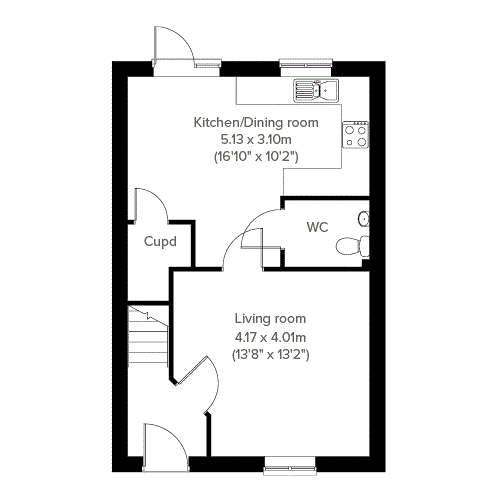 The Greenwood is a four-bedroom, three-bathroom home. The ground floor includes a kitchen/dining room, living room, utility, WC and storage cupboard.
