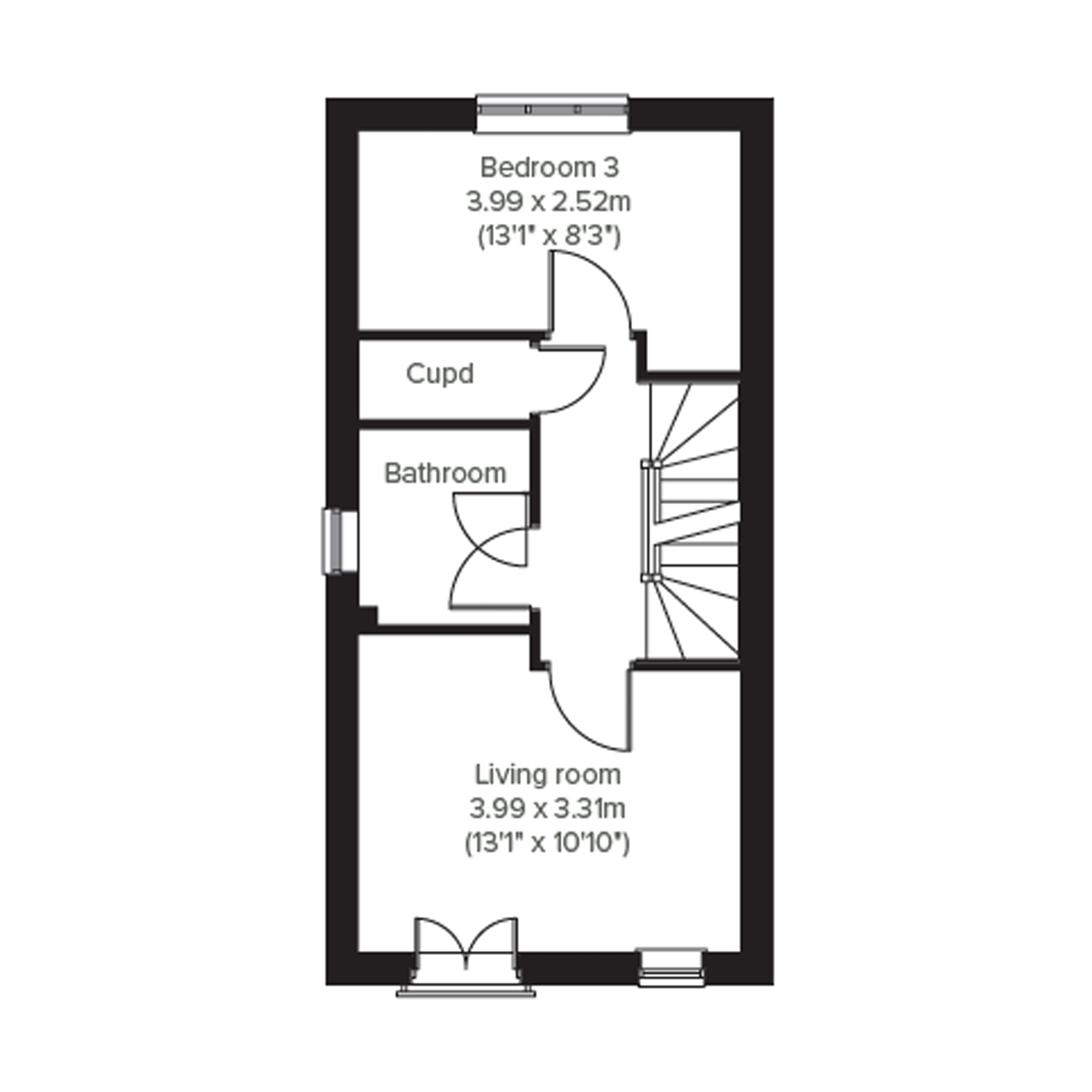 An attractive three-storey home, the Saunton has an open-plan kitchen/dining room, a living room and three bedrooms.