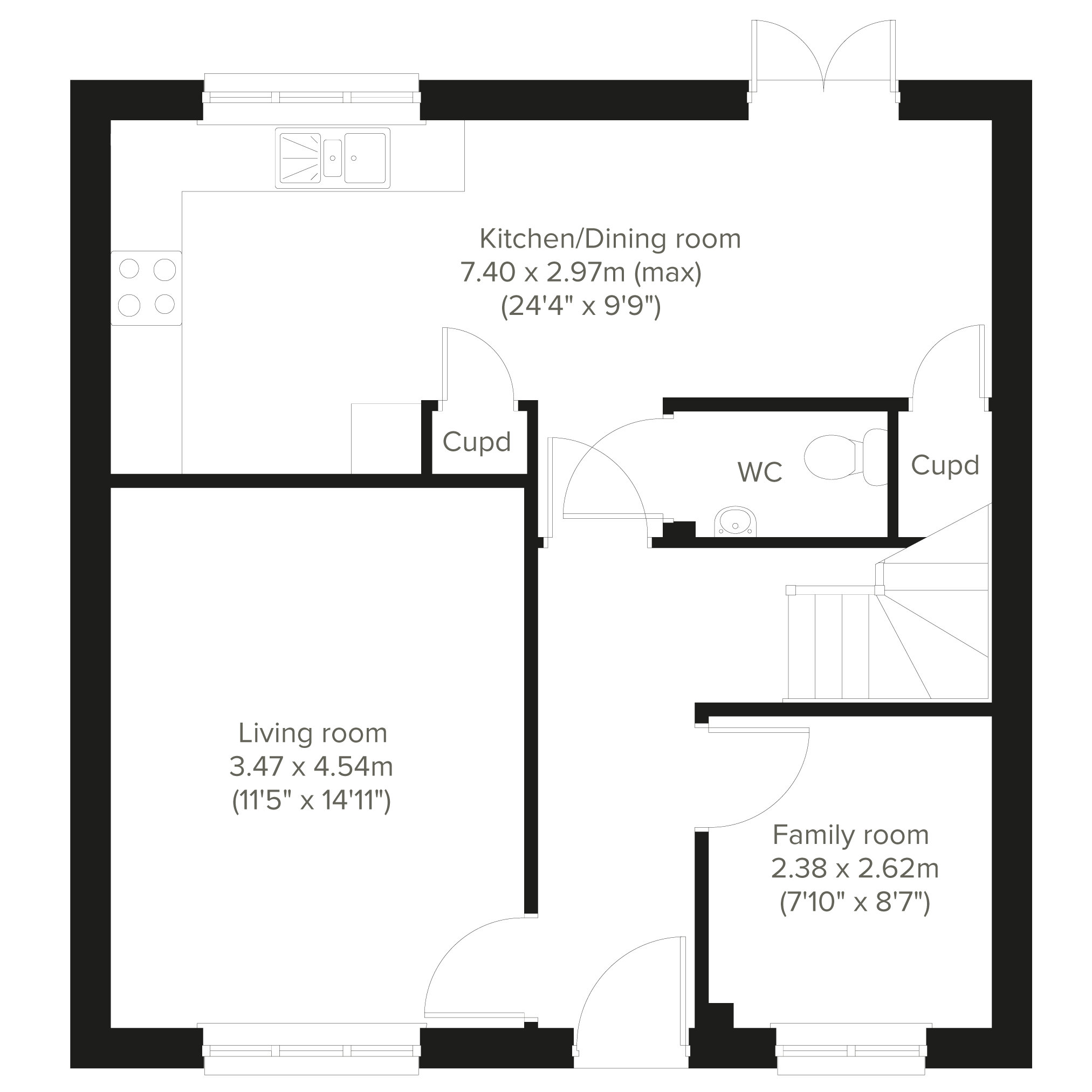 An impressive family home, the Thurso is a fantastic four-bedroom house with a bright and modern kitchen/dining room with French doors leading into the garden, plus a front aspect family room and living room. The downstairs WC, handy storage cupboards and en suite to bedroom one means its well-suited for practical family-living.