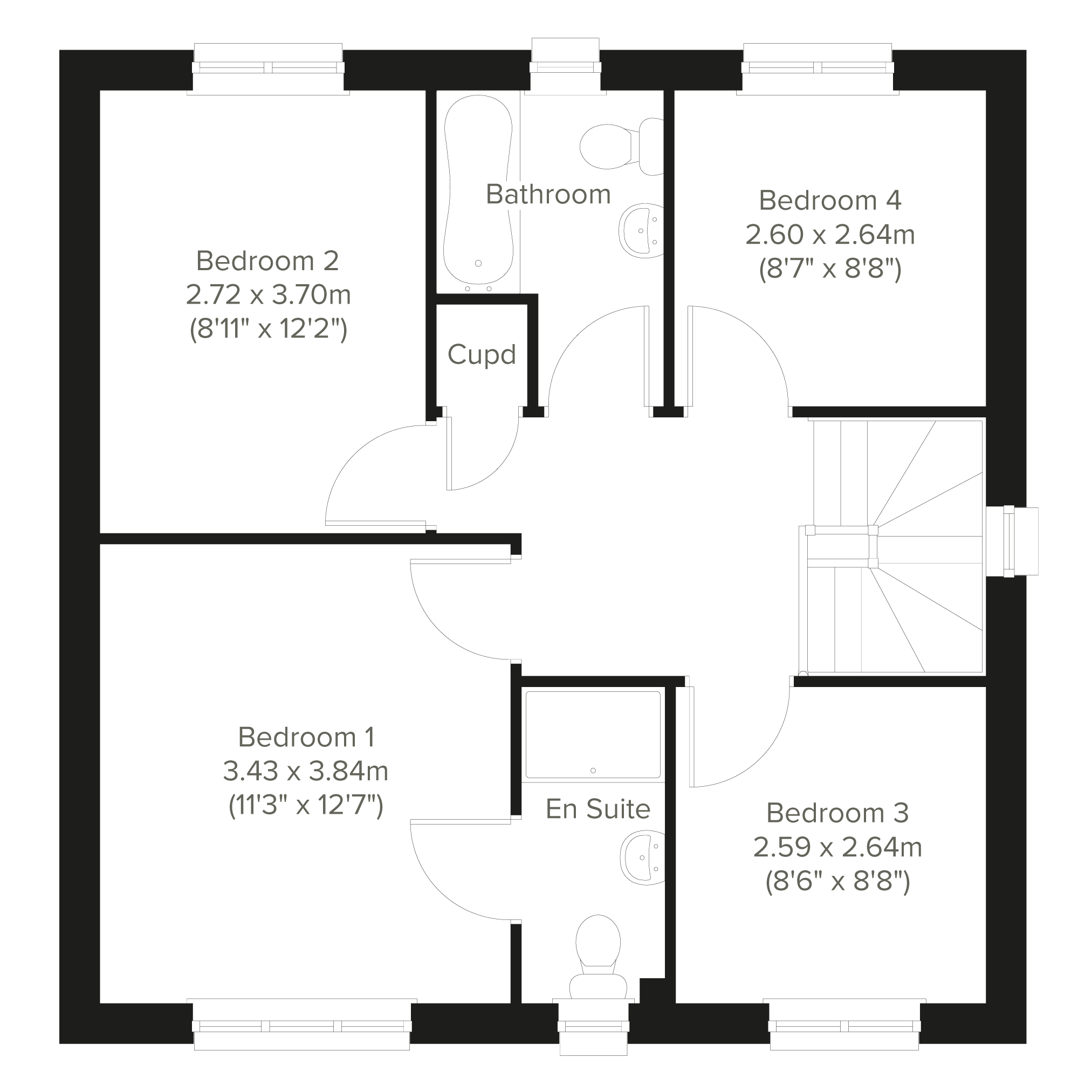 - Council tax band: Not made available by local authority until post-occupation