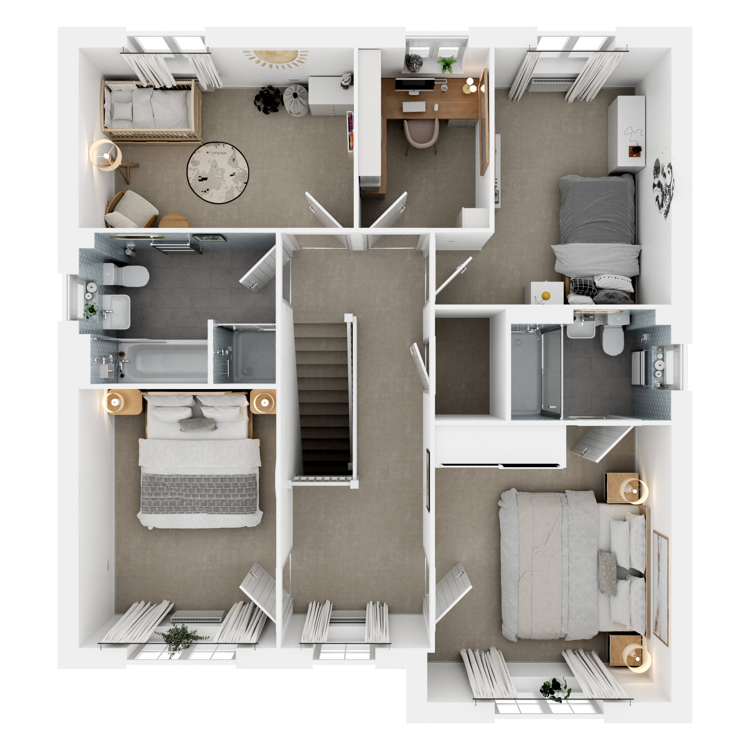 The Hendon is a new home that offers plenty of flexibility to a growing family. Whether its the four bedrooms and two bathrooms, the home office, the open-plan kitchen/dining room, or the separate living room, this is a home with a carefully considered layout. The bi-fold doors to the garden let the outside in, and internal access to the integral garage is a practical feature.