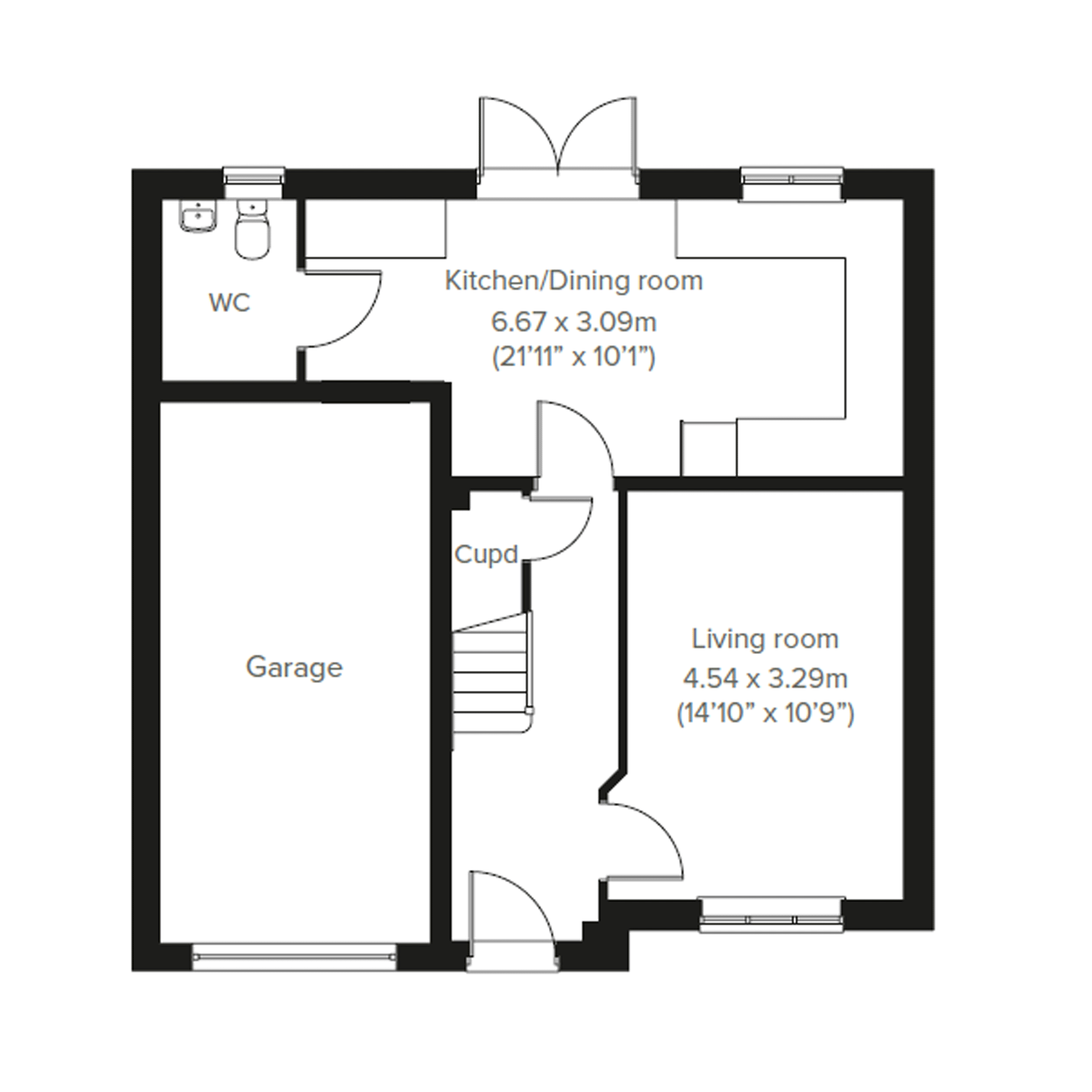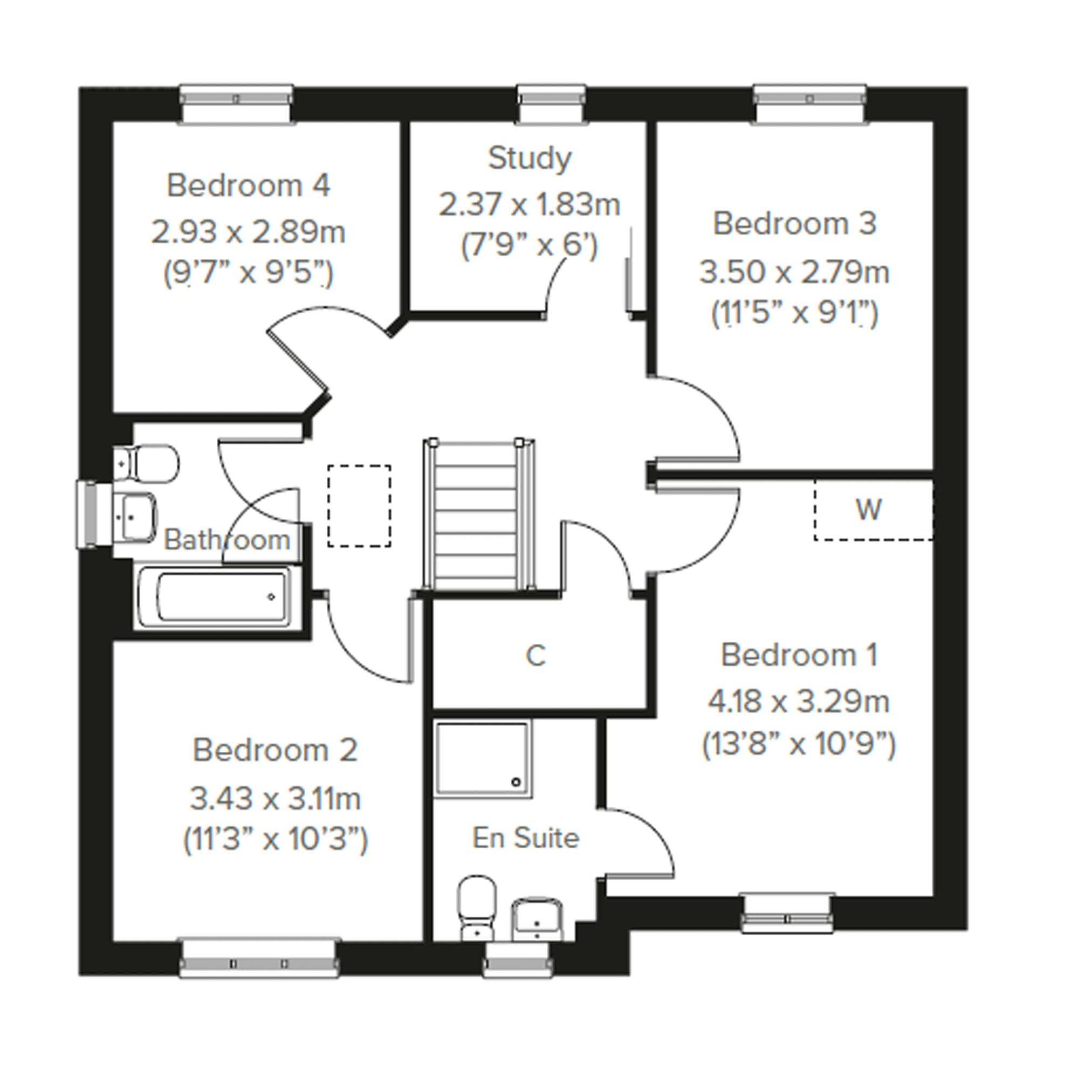 The Marston is a four-bedroom detached home offering open-plan living. The light and airy kitchen/dining room enjoys an open aspect through French doors to the rear garden. There`s a bright front-aspect living room, a downstairs WC, a storage cupboard and an adjoining integral garage. Upstairs, there are four good-sized bedrooms with spacious bedroom one benefiting from an en-suite, plus a modern fitted family bathroom and study.