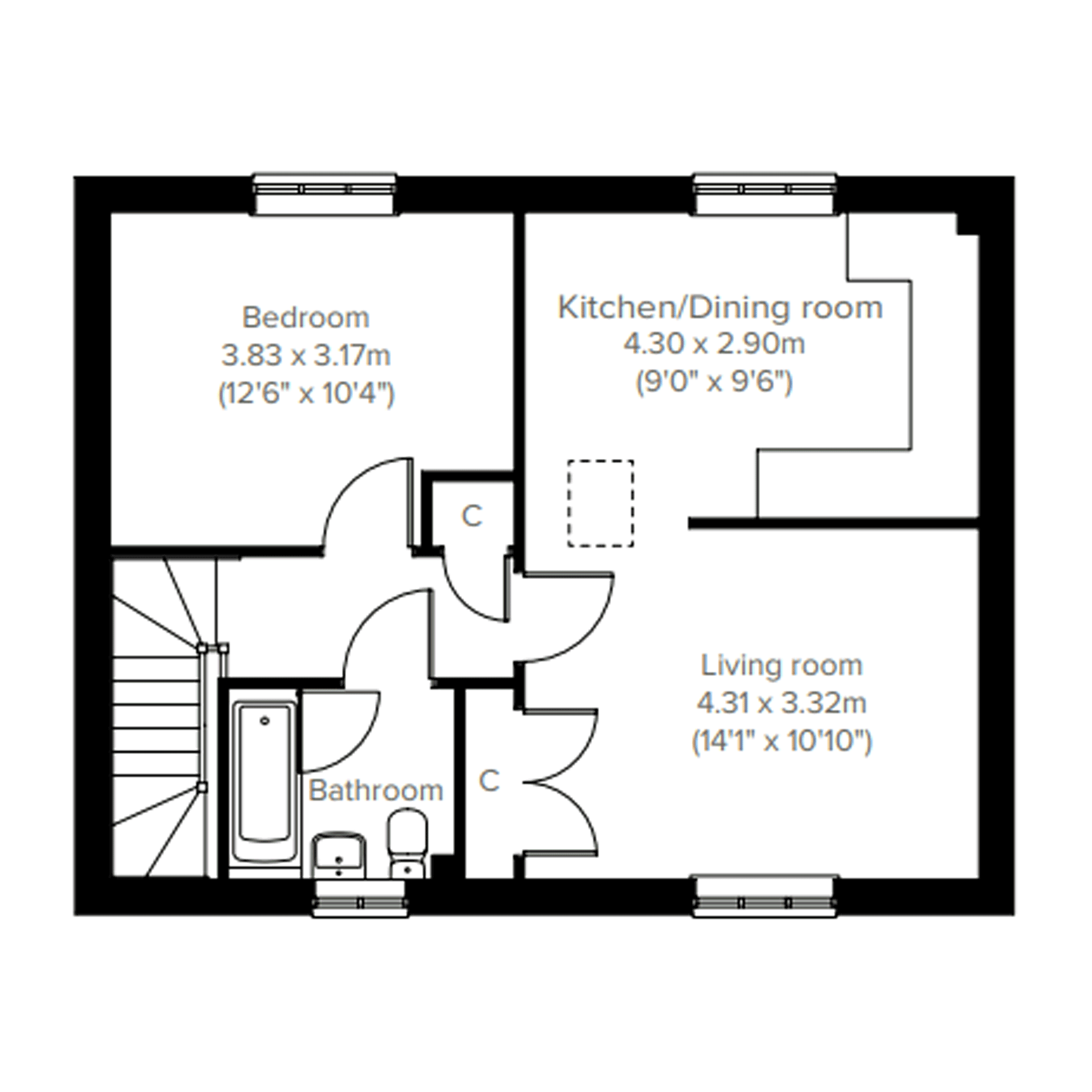 The Ashridge takes a new look at single-storey living by putting your living space on the first floor. The clever drive through, drive in design gives you a dedicated ground floor garage and plenty of storage space. That, in turn, leaves you with plenty of space upstairs to create your welcoming, easy living, home.