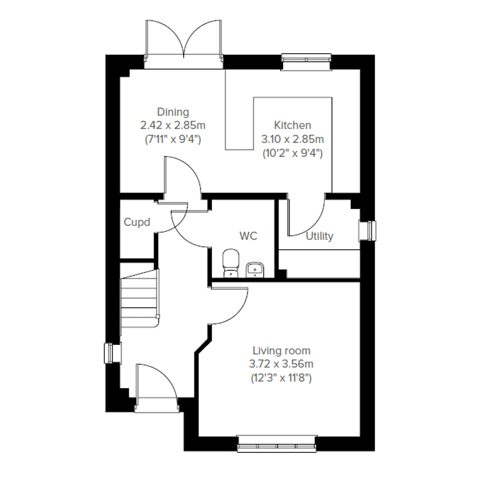 The Deepdale has a lovely balanced feel, created by a central entrance hall and generous living space to either side. The third, smaller room would make a great home office.