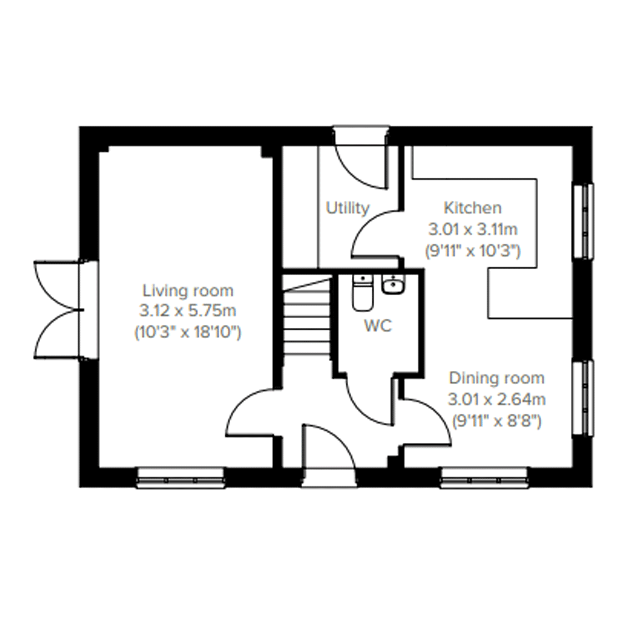 A thoughtfully-designed three-bedroom family home with much to offer, the Barndale has a bright and modern open plan kitchen/dining room leading to a handy utility room. The spacious living room has French doors leading into the garden. The inner hallway, downstairs WC and cupboards take care of everyday storage. Plus theres an en suite to bedroom one and a family bathroom.