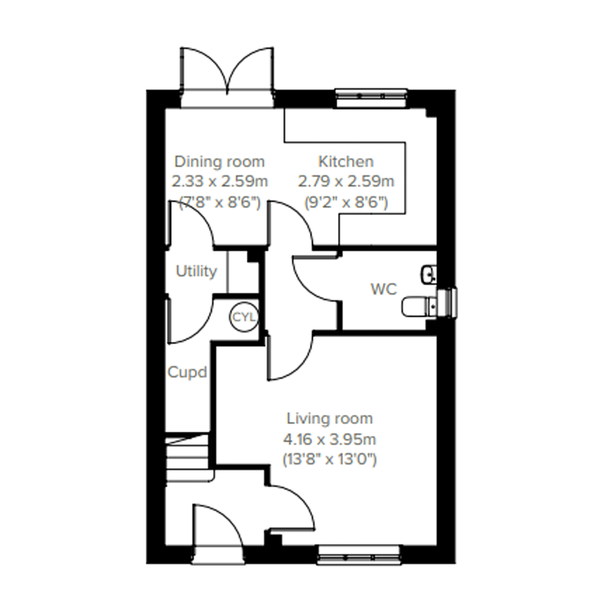 • Downstairs WC & utility