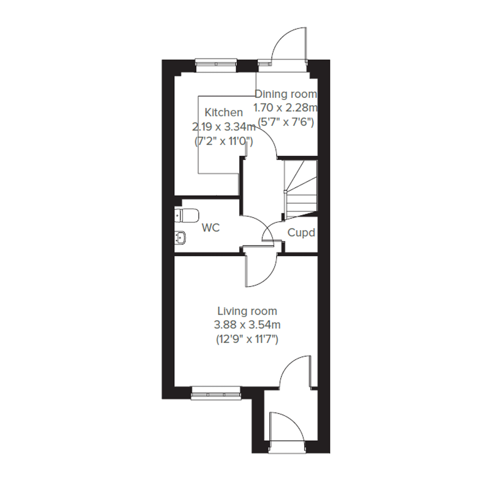 The Silverdale has a bright open plan kitchen/dining room with French doors leading into the garden and a spacious dual-aspect living room. The hallway, WC and cupboards take care of everyday storage.