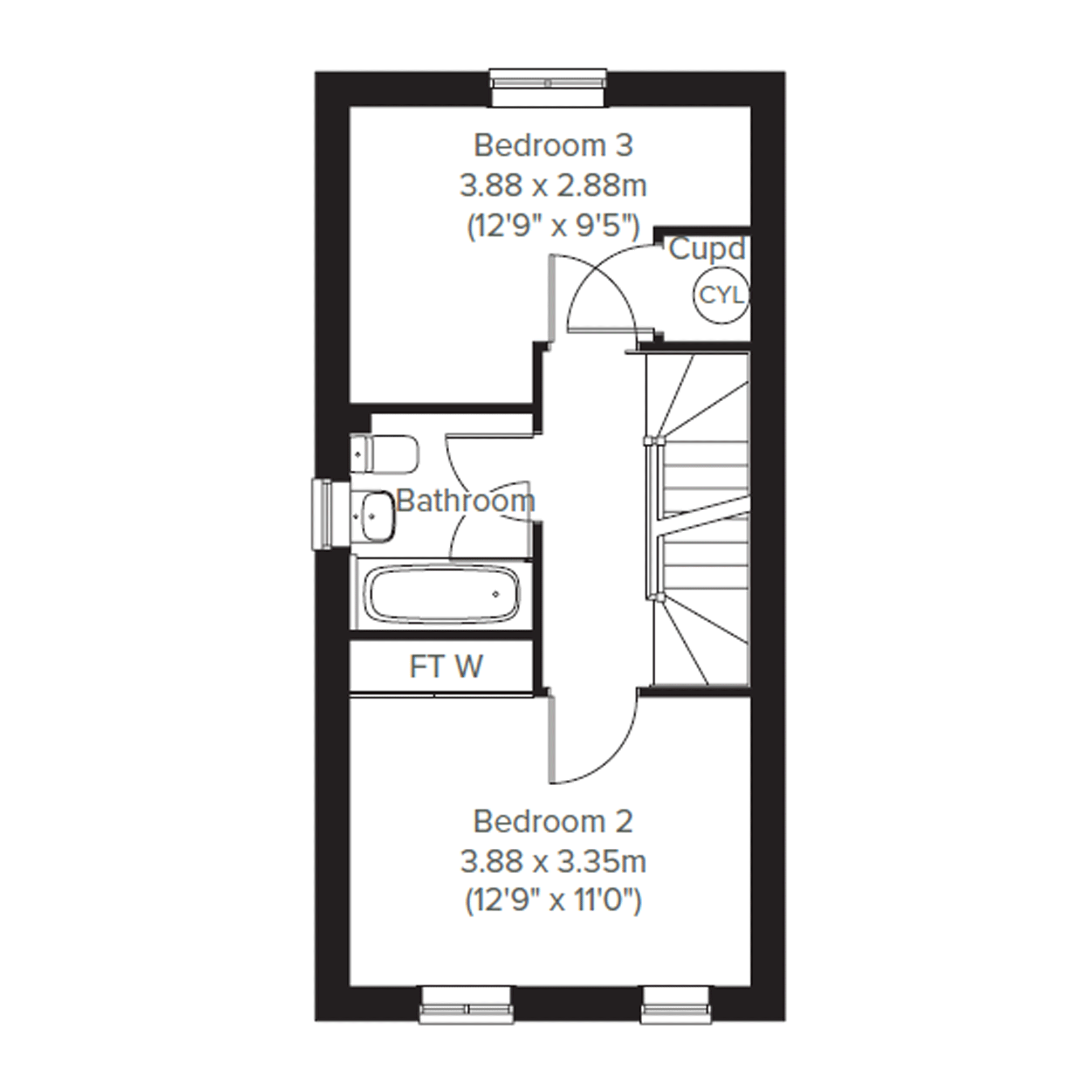 An attractive three-storey home, the Saunton has an open-plan kitchen/dining room, a living room and three bedrooms. The top floor bedroom has an en suite. The enclosed porch, downstairs WC, three storage cupboards and off-road parking mean it`s practical as well as stylish.