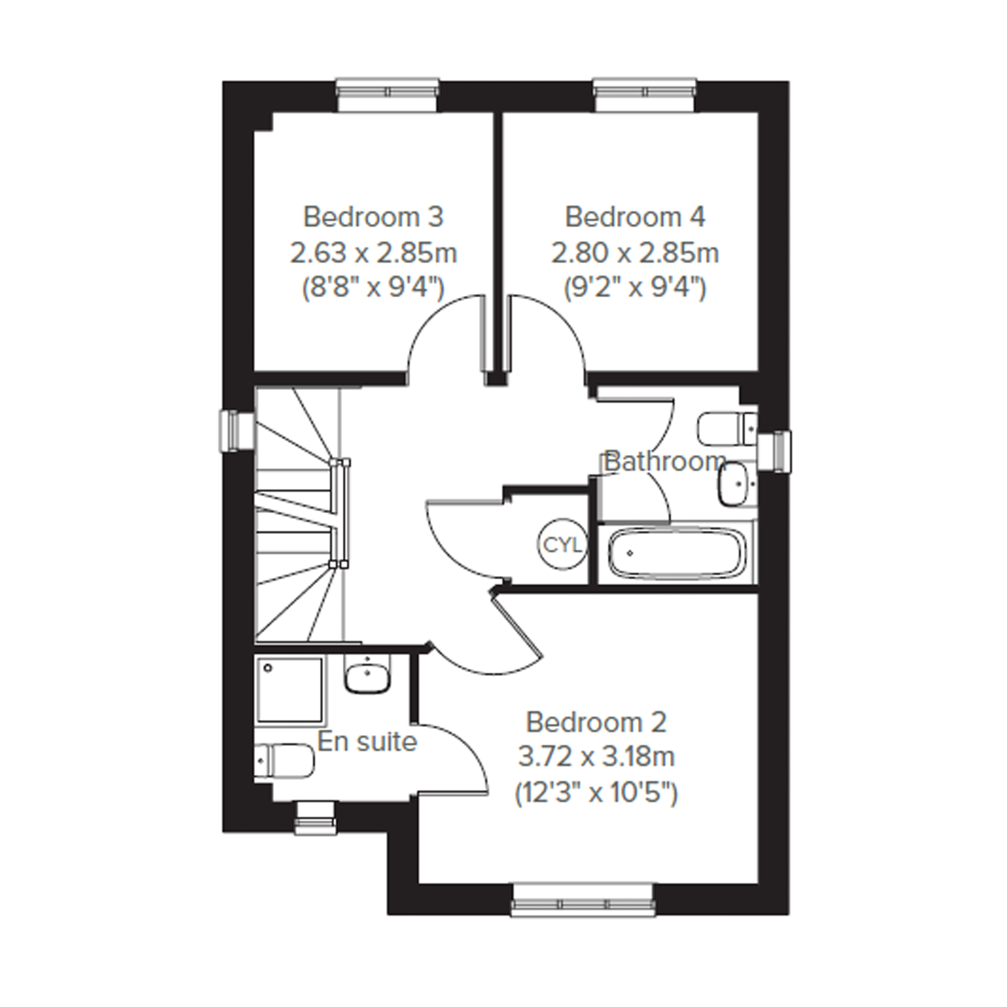 Sometimes you dont just need more space, but more private space to call your own. The Greenwood achieves that for you with two lovely ensuite bedrooms - one of them has the whole of the second floor to itself to choose from. This is a great layout for a growing family, with plenty of space for family time on the ground floor.