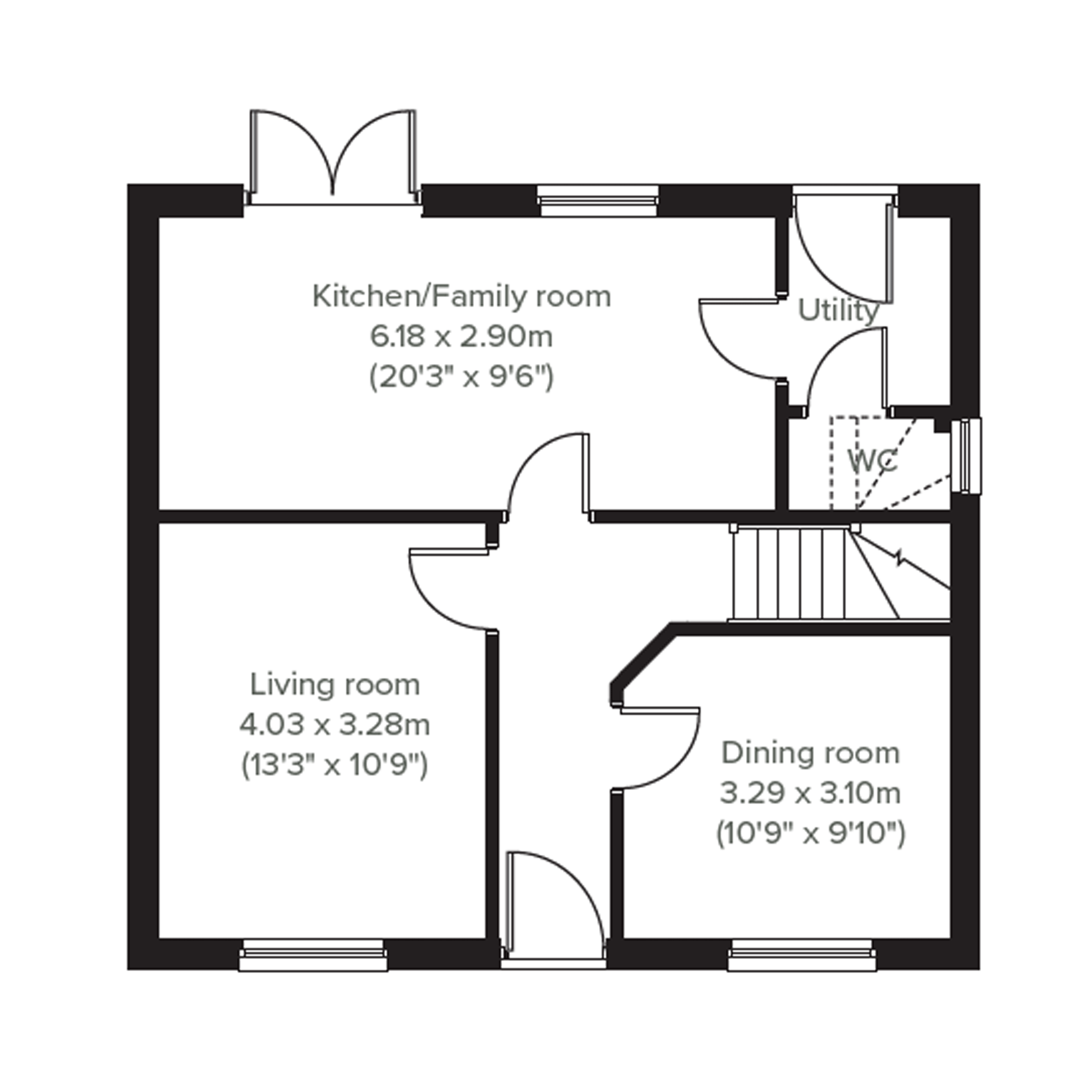 The Chedworth ticks all the boxes for a family home. The modern and stylish open-plan kitchen/family room is perfect for spending time as a family and for entertaining. Theres also a well-proportioned living room, separate dining room, downstairs WC and handy utility room with outside access. Upstairs there are four bedrooms - bedroom one with it`s own en suite - a large family-sized bathroom and another storage cupboard.