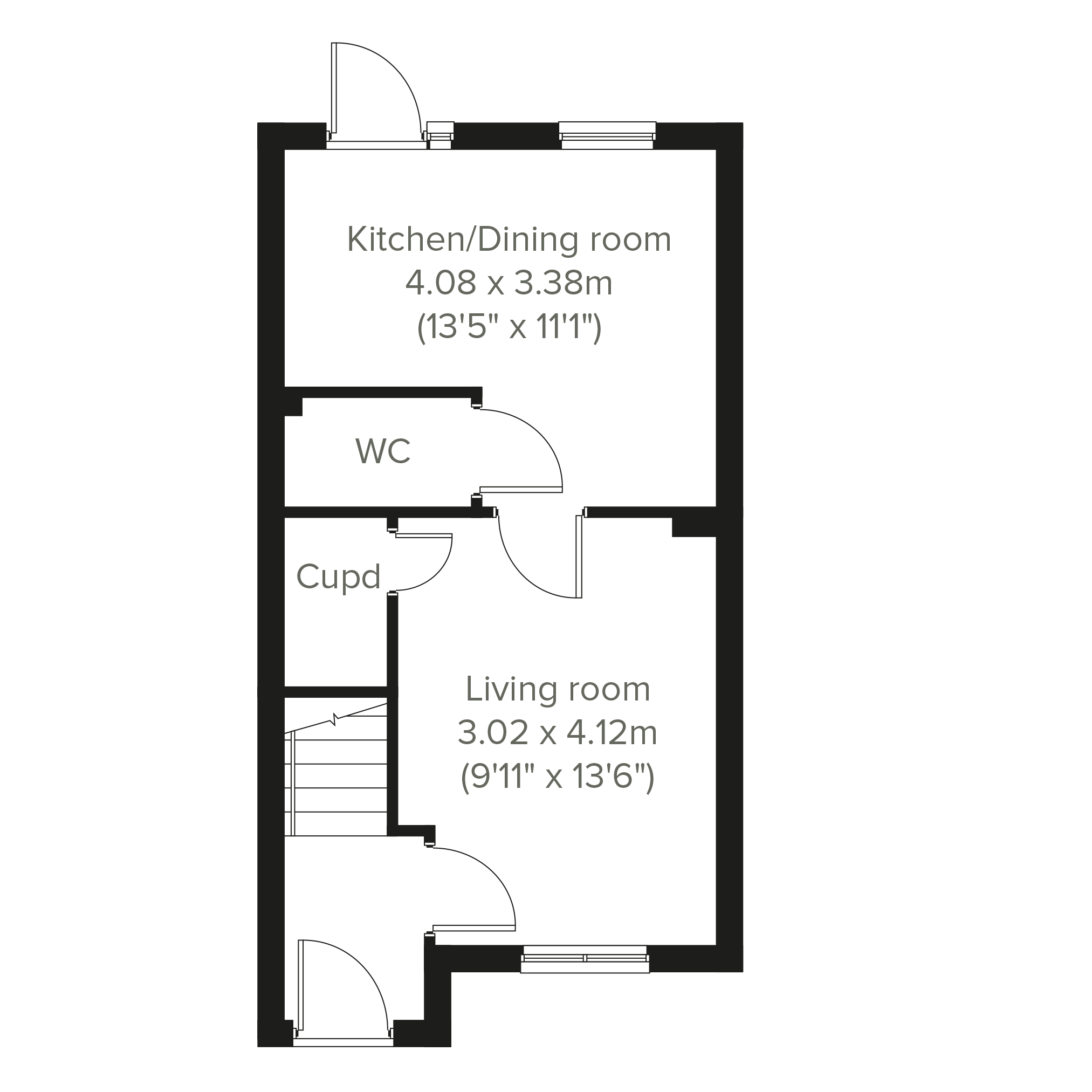 A beautifully-proportioned three-bedroom home, the Brodick has everything you need for modern living. Downstairs there is an open plan kitchen/dining room with a single French door leading into the rear garden, a spacious lounge, a large storage cupboard under the stairs and a WC. The first floor has two good-sized bedrooms and a family bathroom. The second floor is home to a spacious bedroom one.