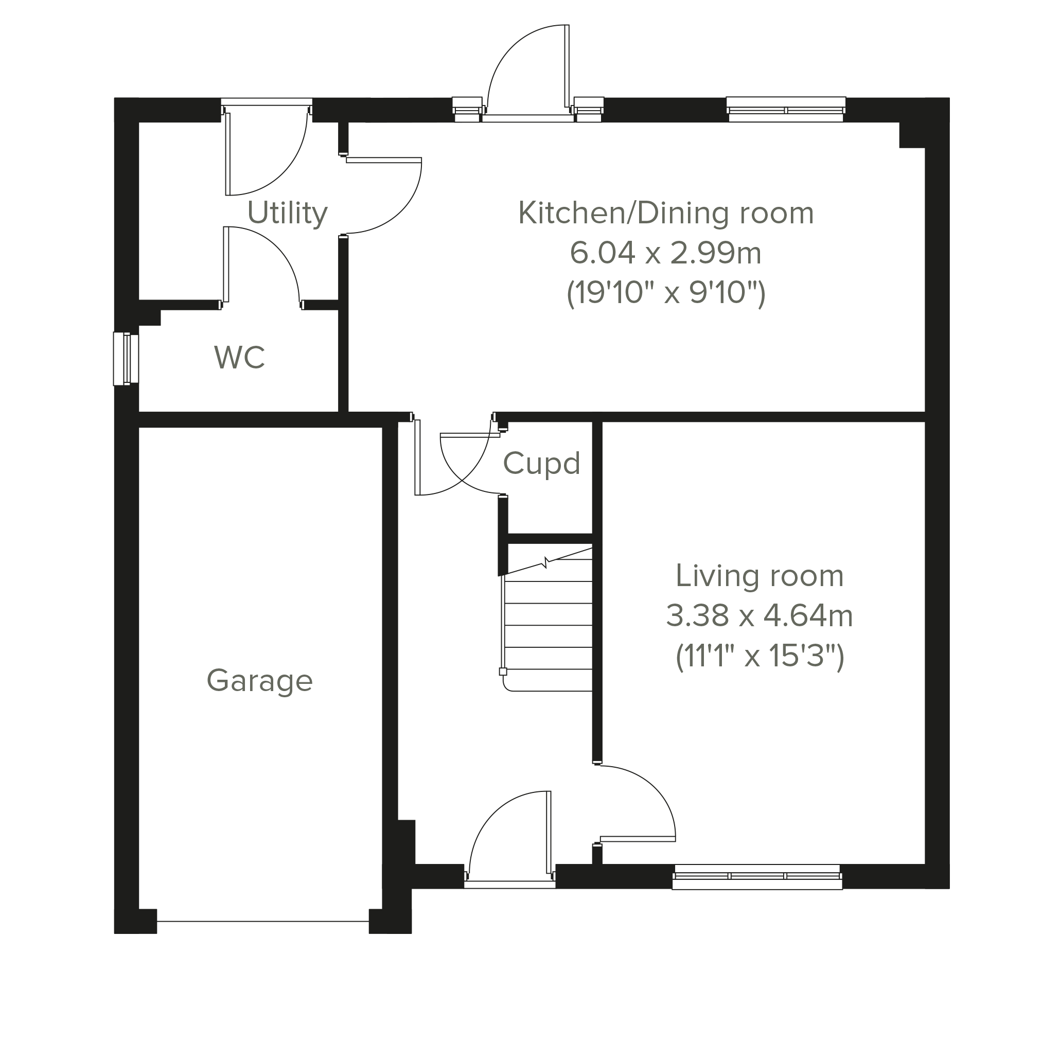 The Thornton is a four-bedroom detached family home with an integral garage. The ground floor layout includes a living room, kitchen/dining room which leads to a utility room and a downstairs WC. Both the kitchen and the utility room have direct access to the garden. Upstairs, bedroom one has its own en suite and the other bedrooms share the family bathroom. Built-in storage on both floors is another feature of this home.