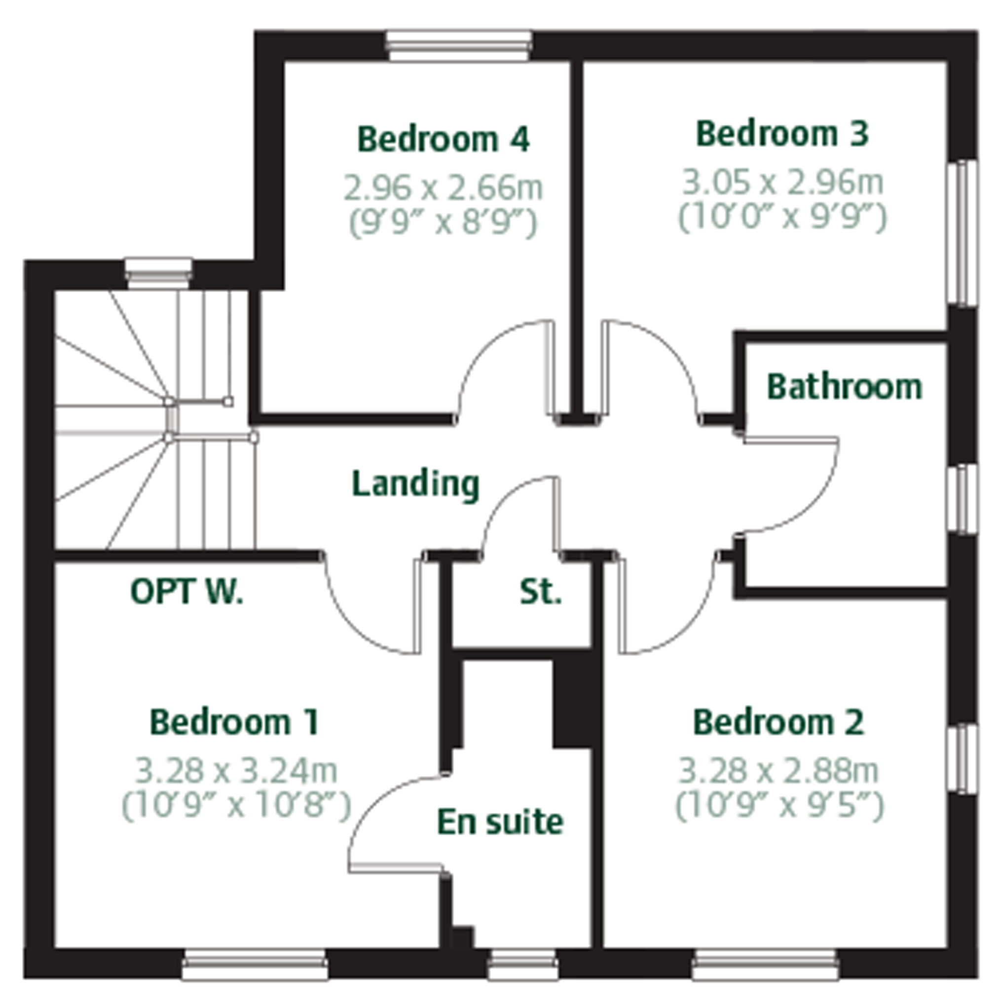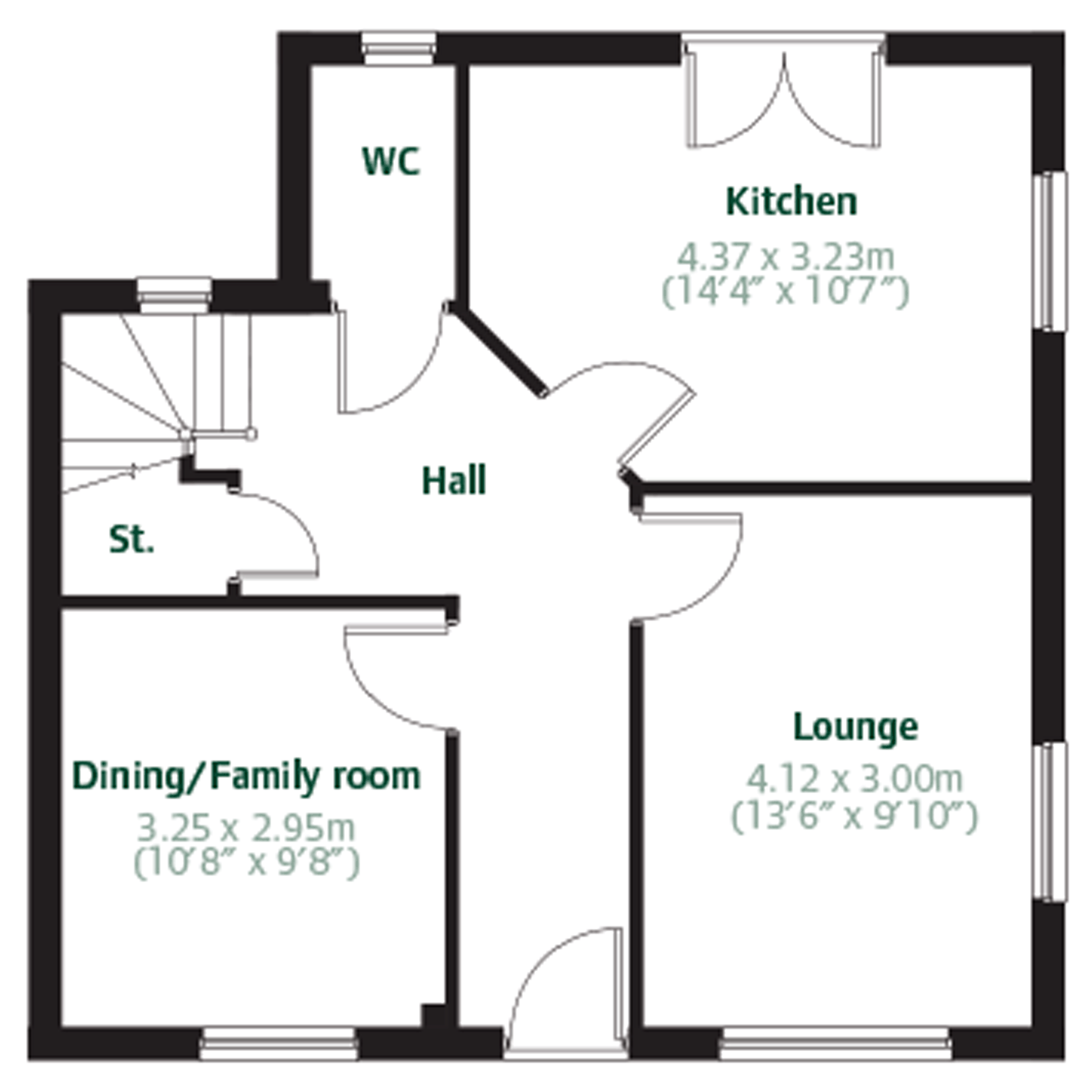 Ideal for families, The Aberlour II is a four-bedroom home providing flexible accommodation. Downstairs the Aberlour features a spacious and welcoming hall with a useful storage cupboard, a dual-aspect lounge, a separate dining room which could easily be used as a playroom/snug, a kitchen/diner with French doors leading to the rear garden and a downstairs cloakroom. Upstairs there is further storage on the landing, an en suite to bedroom one and a family bathroom.