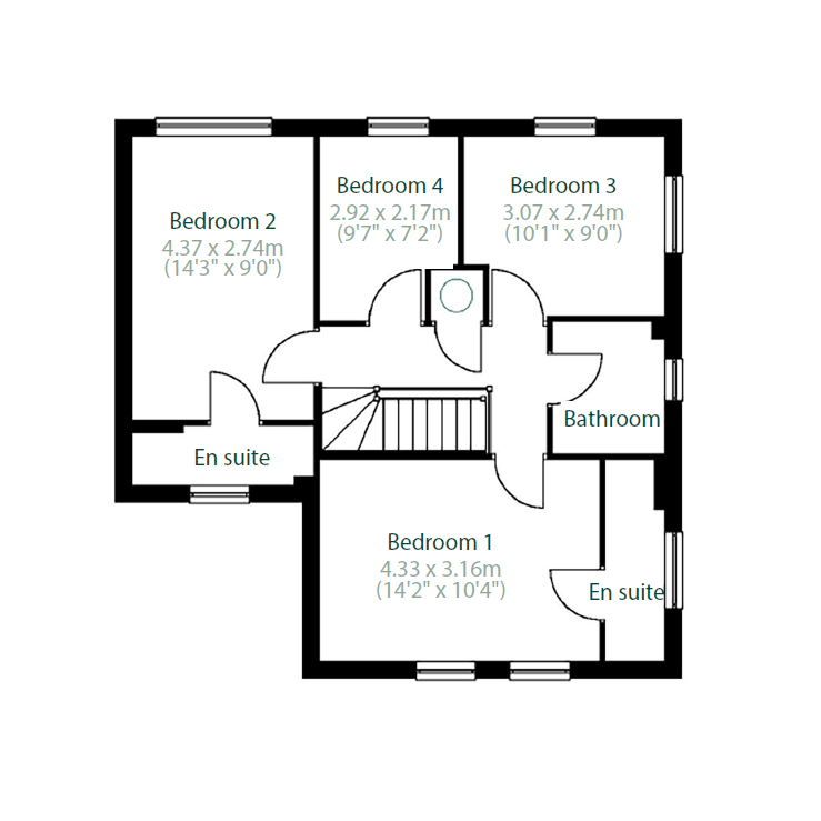 The Escrick is a fantastic detached family home with four-bedrooms and a garage. The ground floor is divided between a spacious living room with a lovely bay window and a kitchen/dining room with French doors to the garden. There`s also a storage cupboard and a WC. Upstairs, two of the bedrooms have the luxury of their own en suites, while the other two share a family bathroom. The first-floor layout also includes another built-in cupboard.
