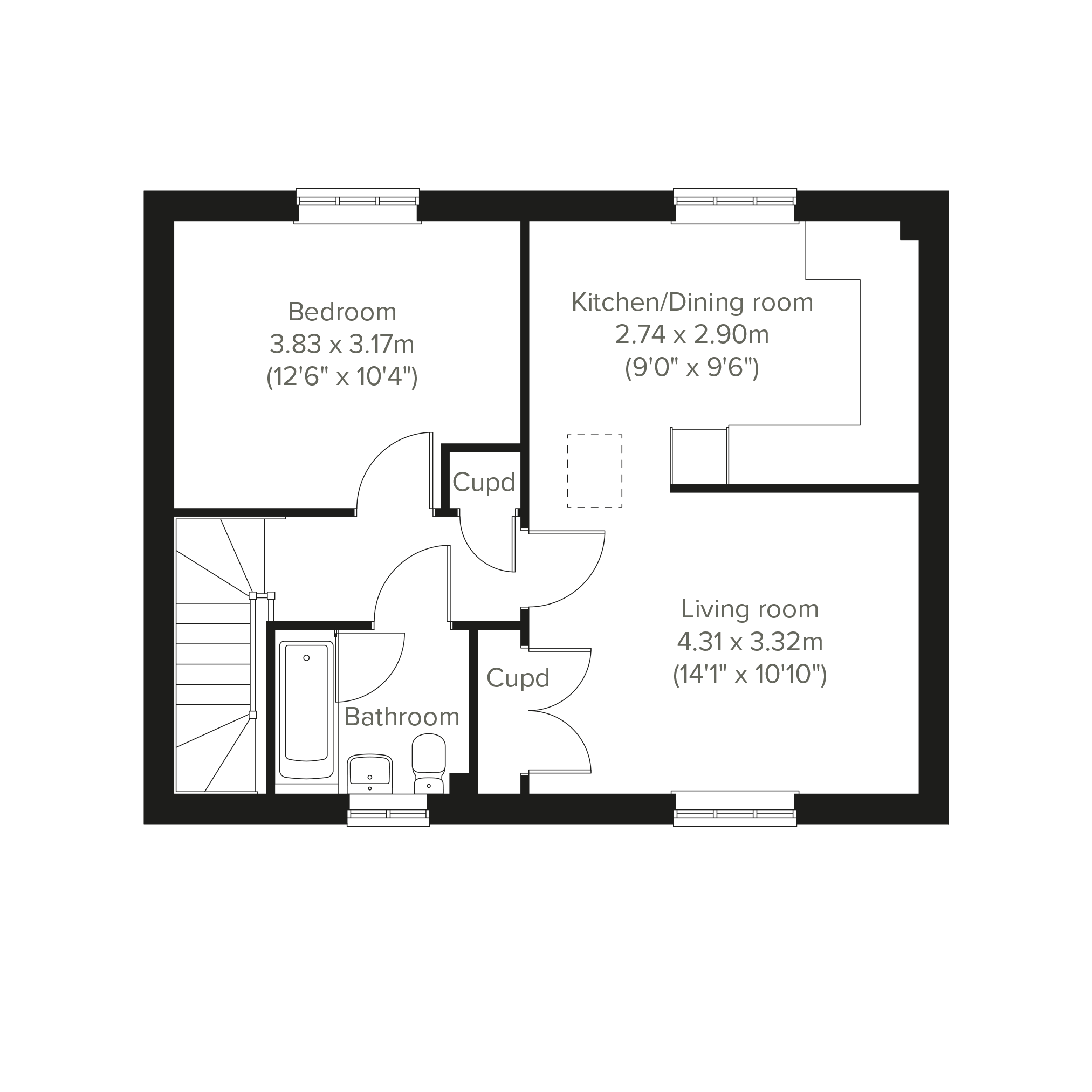 - Council tax band: Not made available by local authority until post-occupation