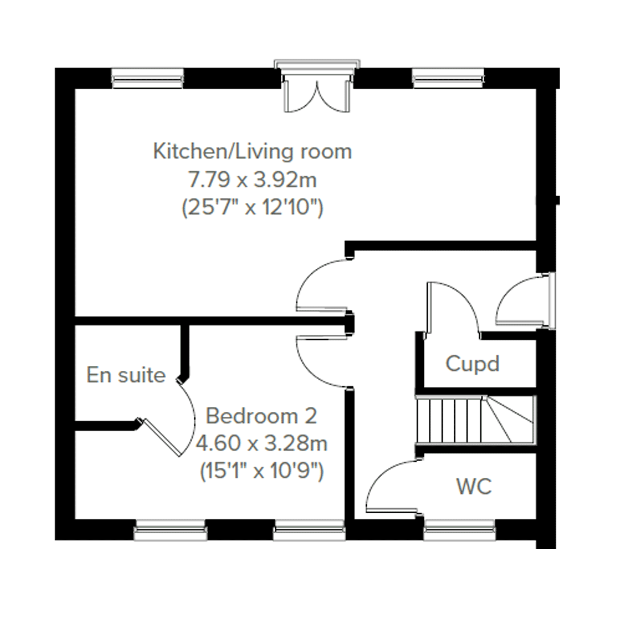 The Linton puts a fabulous kitchen/dining room. There`s a bright rear-aspect living room. Good sized bedroom. The bathroom and two more built-in storage cupboards complete the first floor.