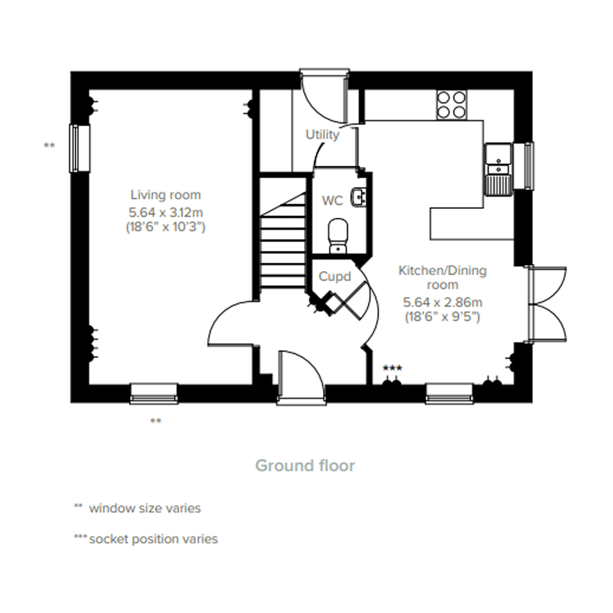 The Radstone has a spacious living room with French doors to the garden and an open-plan kitchen/dining room. Theres also a utility room with outside access, a WC and a storage cupboard.