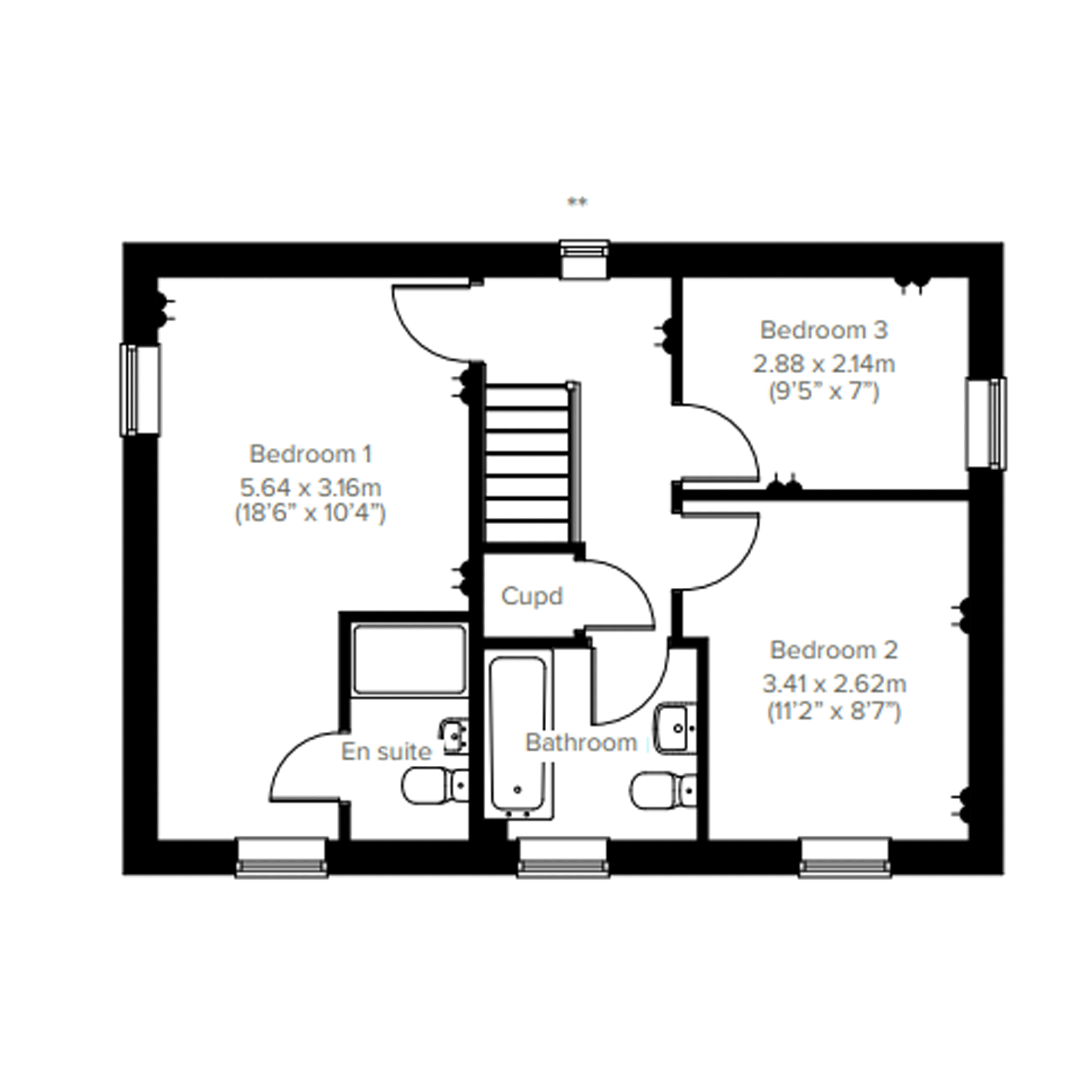 The Silverstone is a family home with three bedrooms and two bathrooms. Theres a kitchen, living/dining room with French doors to the garden, a downstairs WC and a built-in storage cupboard.