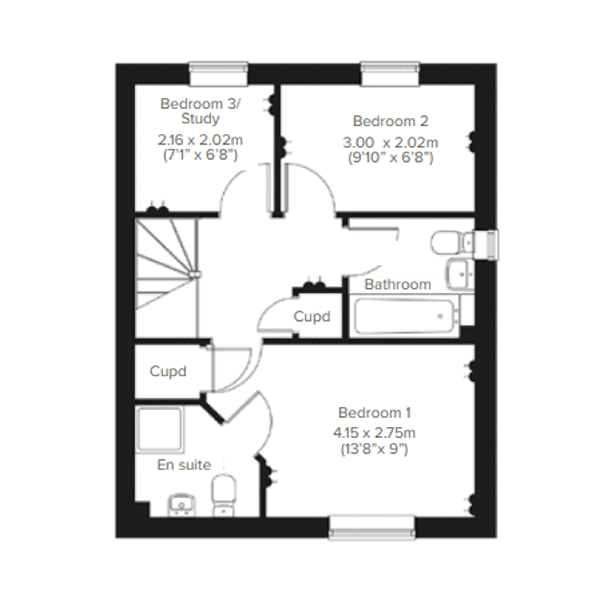 The Silverstone is a cheerful family home with three bedrooms and two bathrooms. A kitchen, a spacious living/dining room - which has French doors leading into the garden - a downstairs WC and a large built-in storage cupboard will suit family life. Upstairs, bedroom one has a large corner en-suite, bedrooms two and three share the family bathroom and there`s yet more storage space.