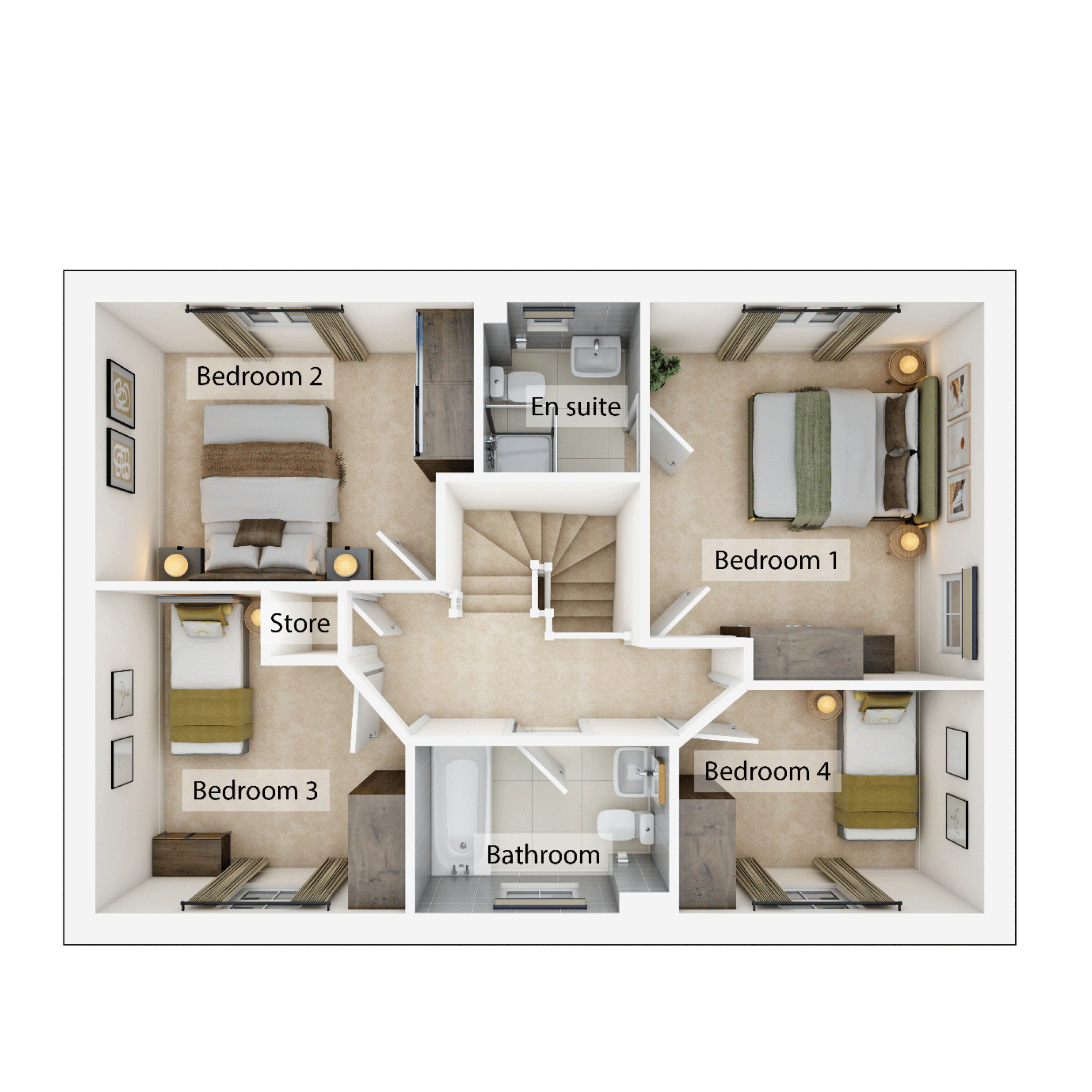 The beautifully-designed Halse Bay is a lovely home with a good-sized living room with French doors leading into the garden and a bright open plan kitchen/dining room - perfect for family life and entertaining. Its practical too, with a utility with outside access and downstairs WC. The first floor features a large bedroom one with an en suite and the spacious landing leads to bedrooms two, three and four, a storage cupboard and the main family bathroom.
