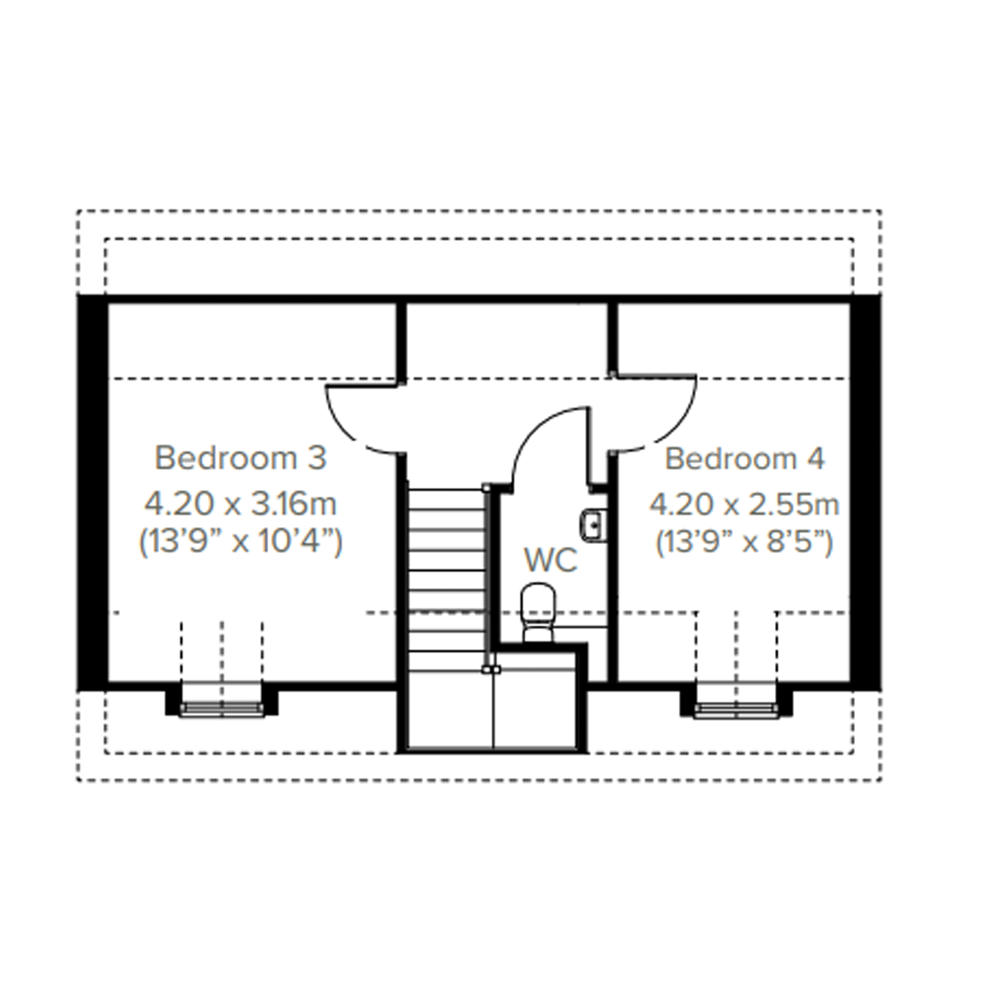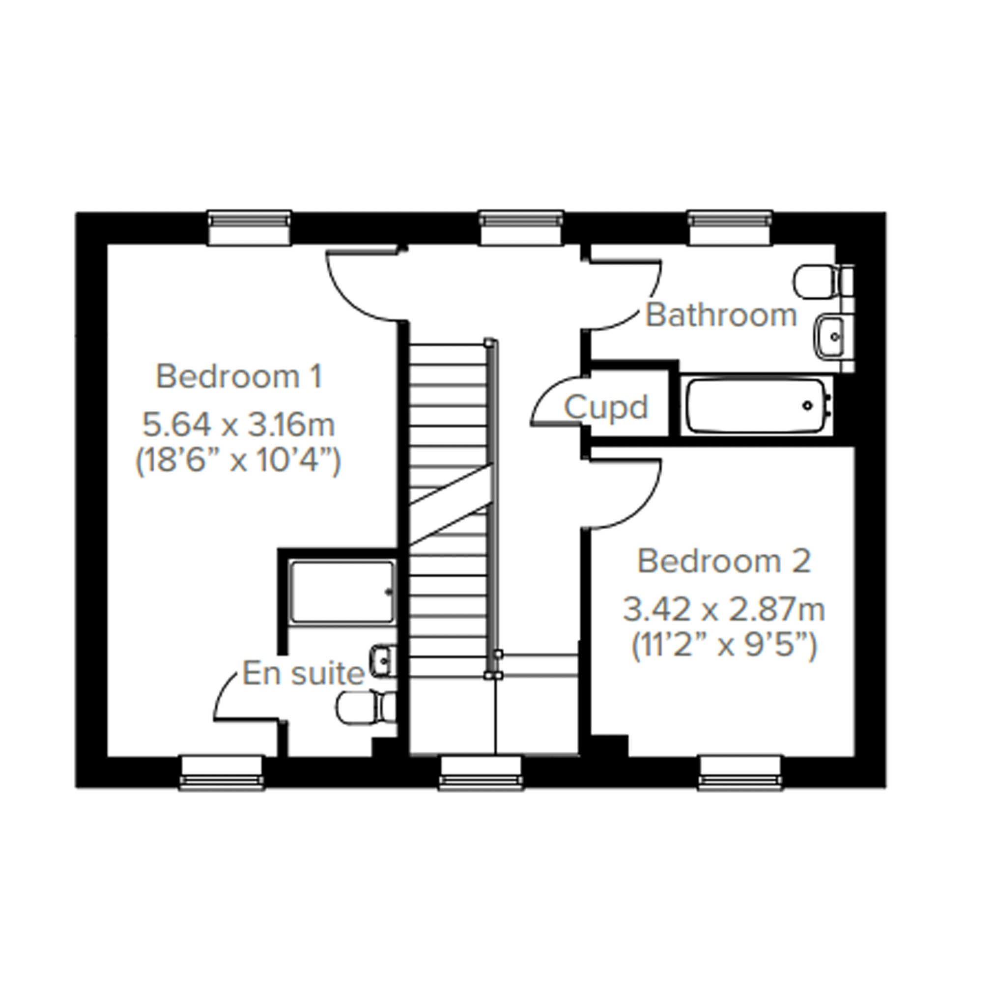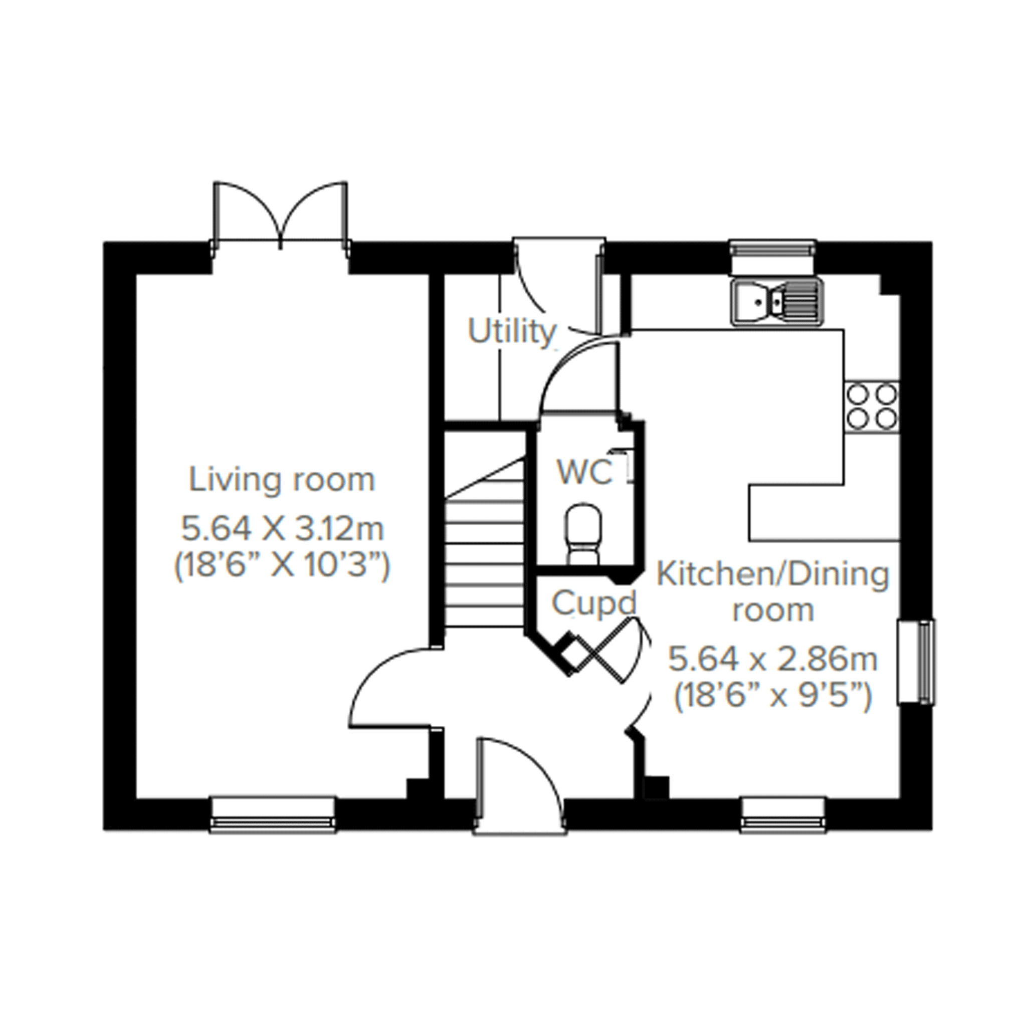 The Ithon is a two-bedroom home with an open-plan layout. French doors lead into the garden and make the ground floor lovely and light. A downstairs WC is a great practical feature.