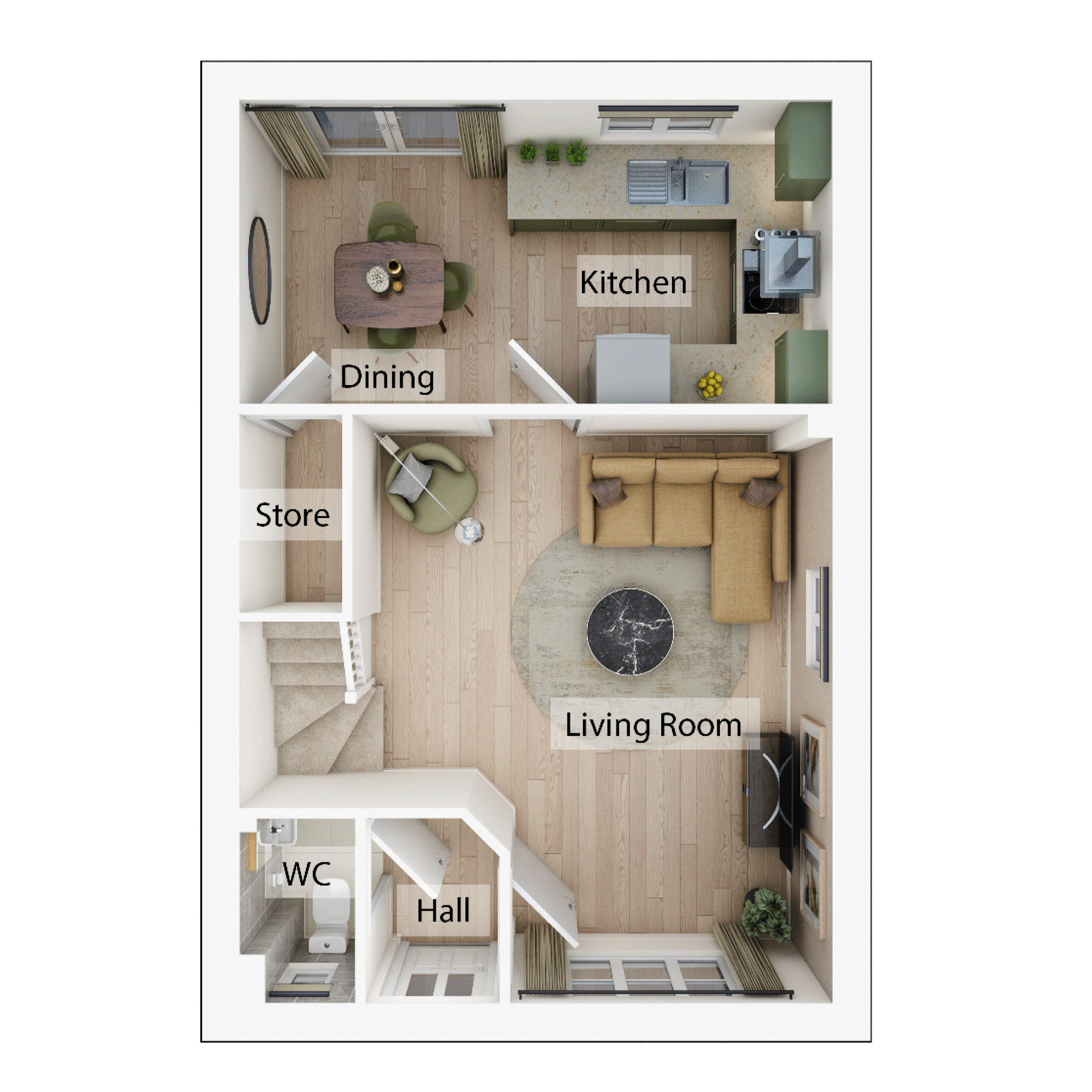 Perfect for the way we live today, the three-bedroom Danbury has a modern open plan kitchen/dining room with garden access and a spacious front-aspect living room thats ideal for entertaining. Upstairs there are three bedrooms - bedroom one has an en suite - and a family-sized bathroom. The Danbury also offers plenty of storage space. Appealing to families, first-time buyers and young professionals.