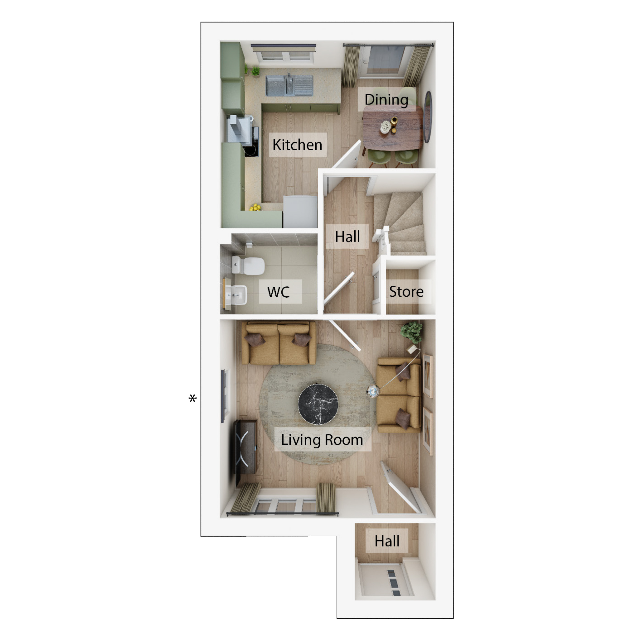 An attractive three-storey, three-bedroom home, the Saunton has a modern open plan kitchen/dining room, well-proportioned living room and three good-sized bedrooms. The top floor bedroom one also has a spacious en suite. The enclosed porch, downstairs WC, three storage cupboards and off-road parking means its practical as well as stylish.