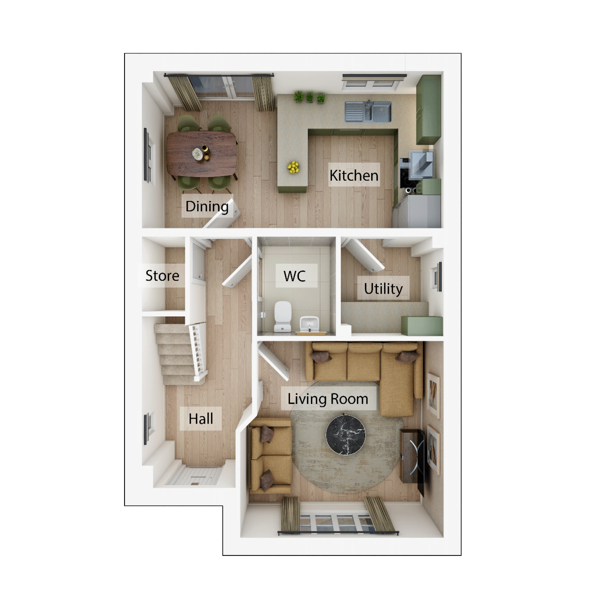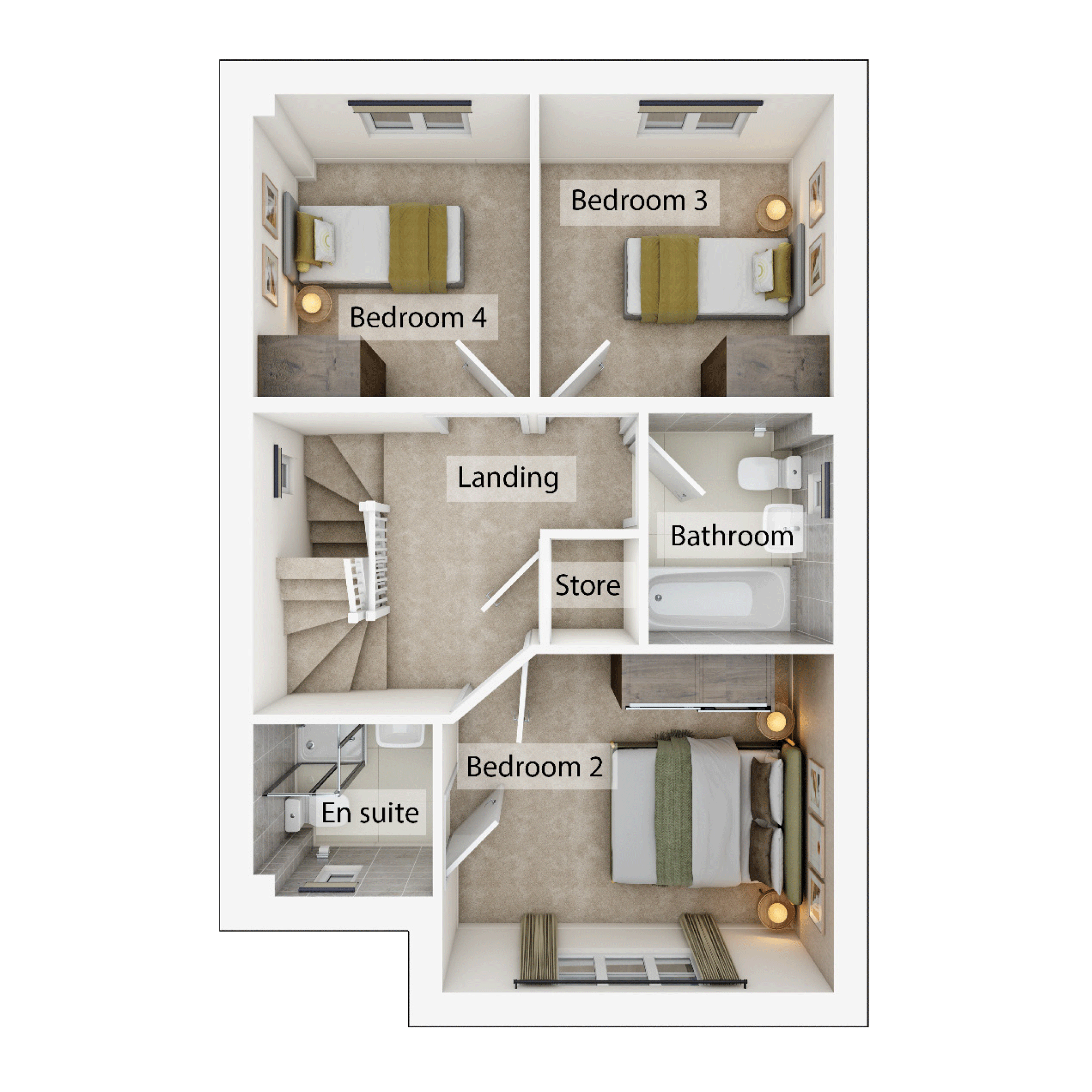 Enjoy the best of modern living in this popular four-bedroom home. The Greenwoods bright front-aspect living room, spacious kitchen/dining room, separate utility room, handy storage cupboard and downstairs WC complete the ground floor. The first floor consists of three bedrooms - bedroom two with an en suite and a family bathroom. On the second floor, bedroom one has an en suite and further storage.