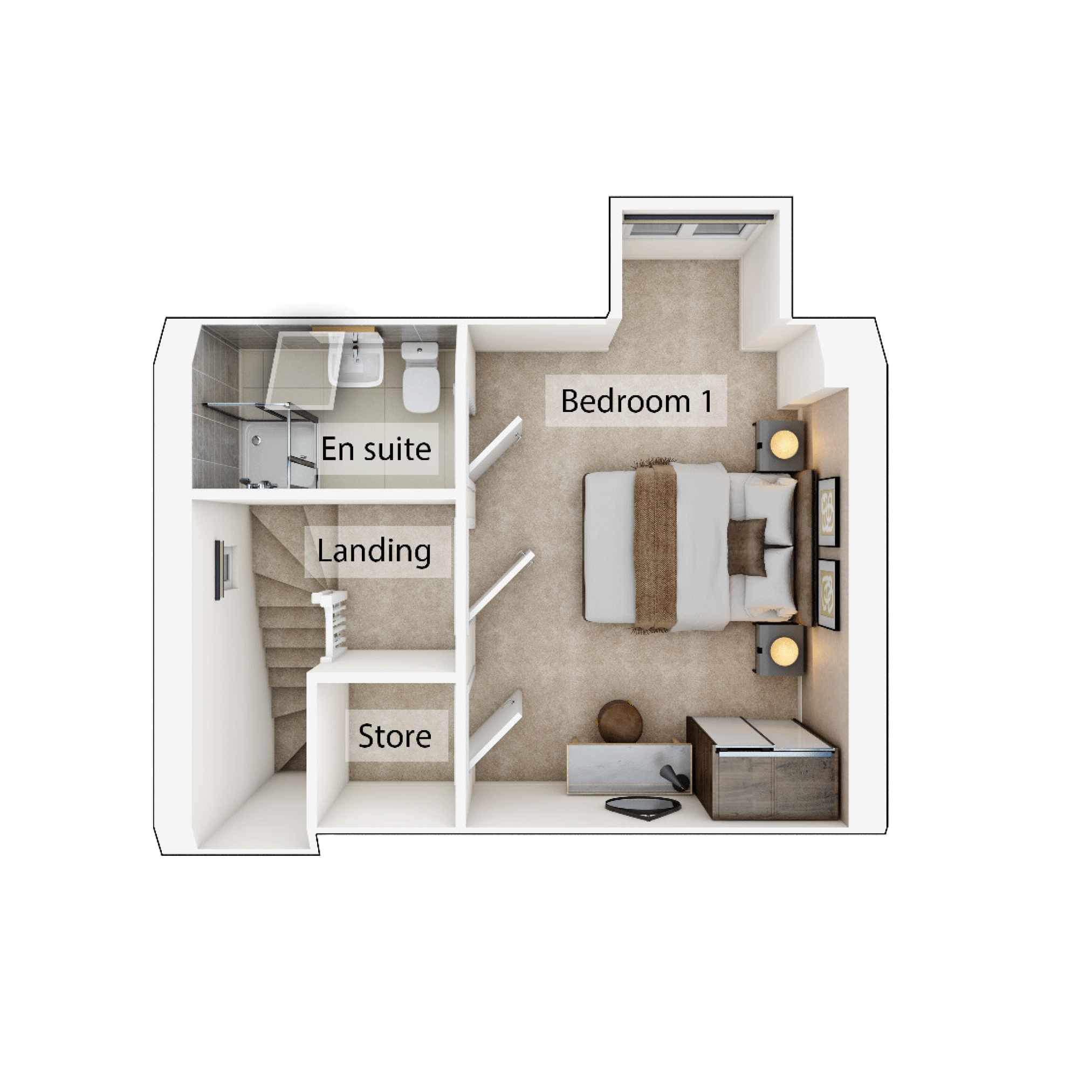 • Top floor bedroom one with en suite and storage cupboard