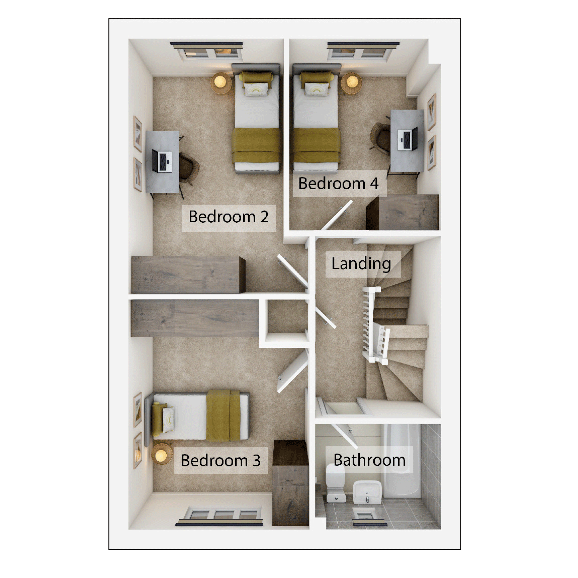 This four-bedroom family home gives someone the treat of a private bedroom suite up on the second floor. The living space on the ground floor is all about the living room a spacious room with French doors to your garden. The Whinfell gives you smart townhouse living with an easy-going, family-friendly design spread out over three floors.