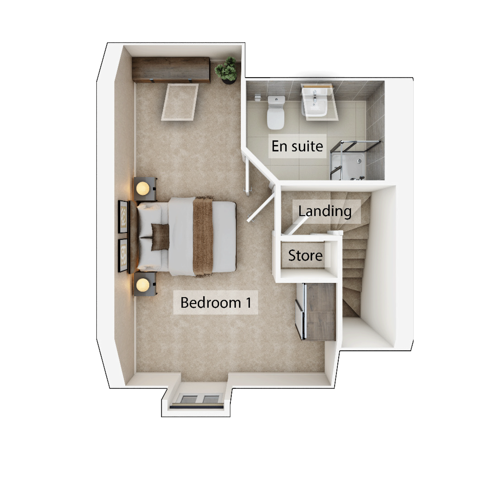 An attractive three-storey home, the Saunton has an open-plan kitchen/dining room, a living room and three bedrooms. The top floor bedroom has an en suite.