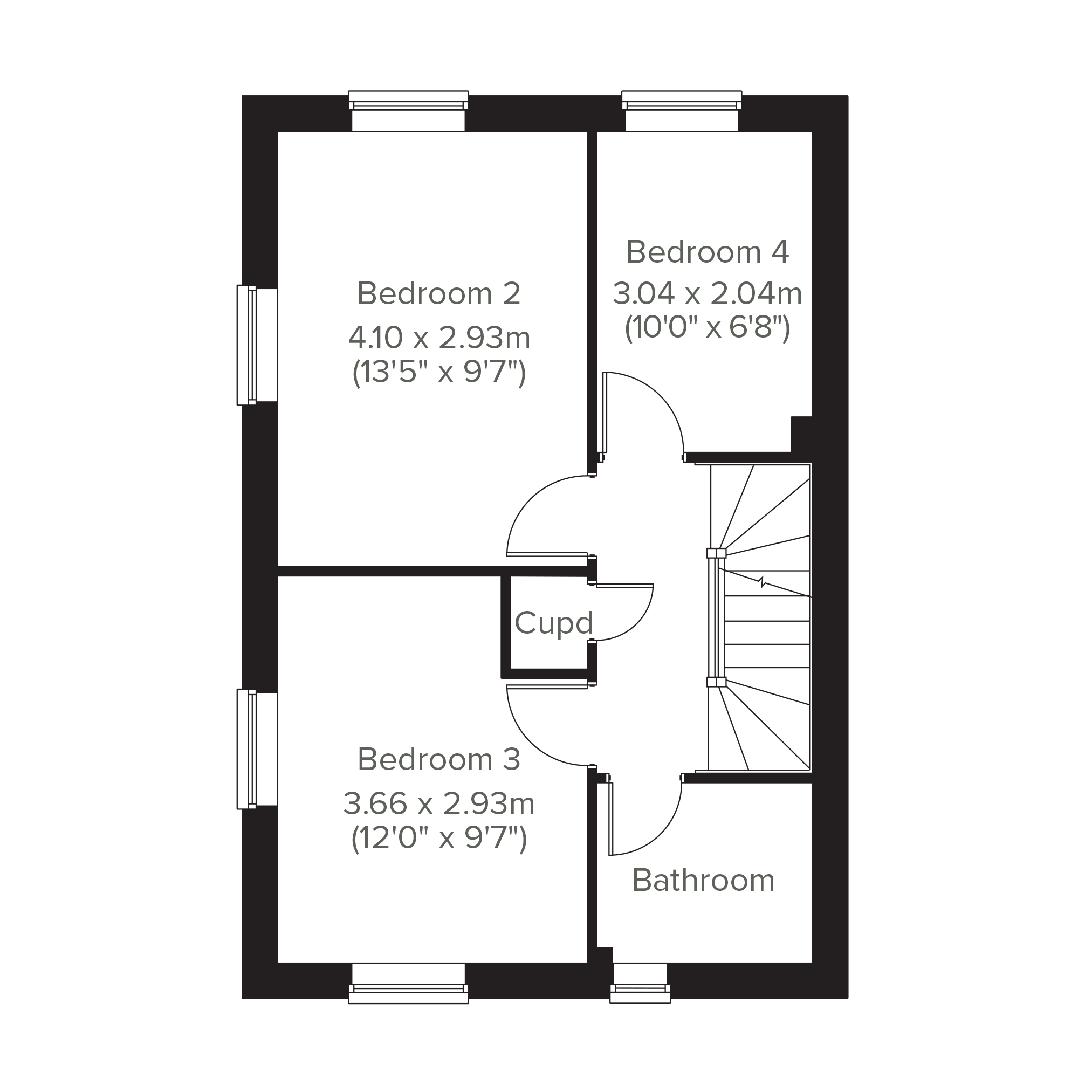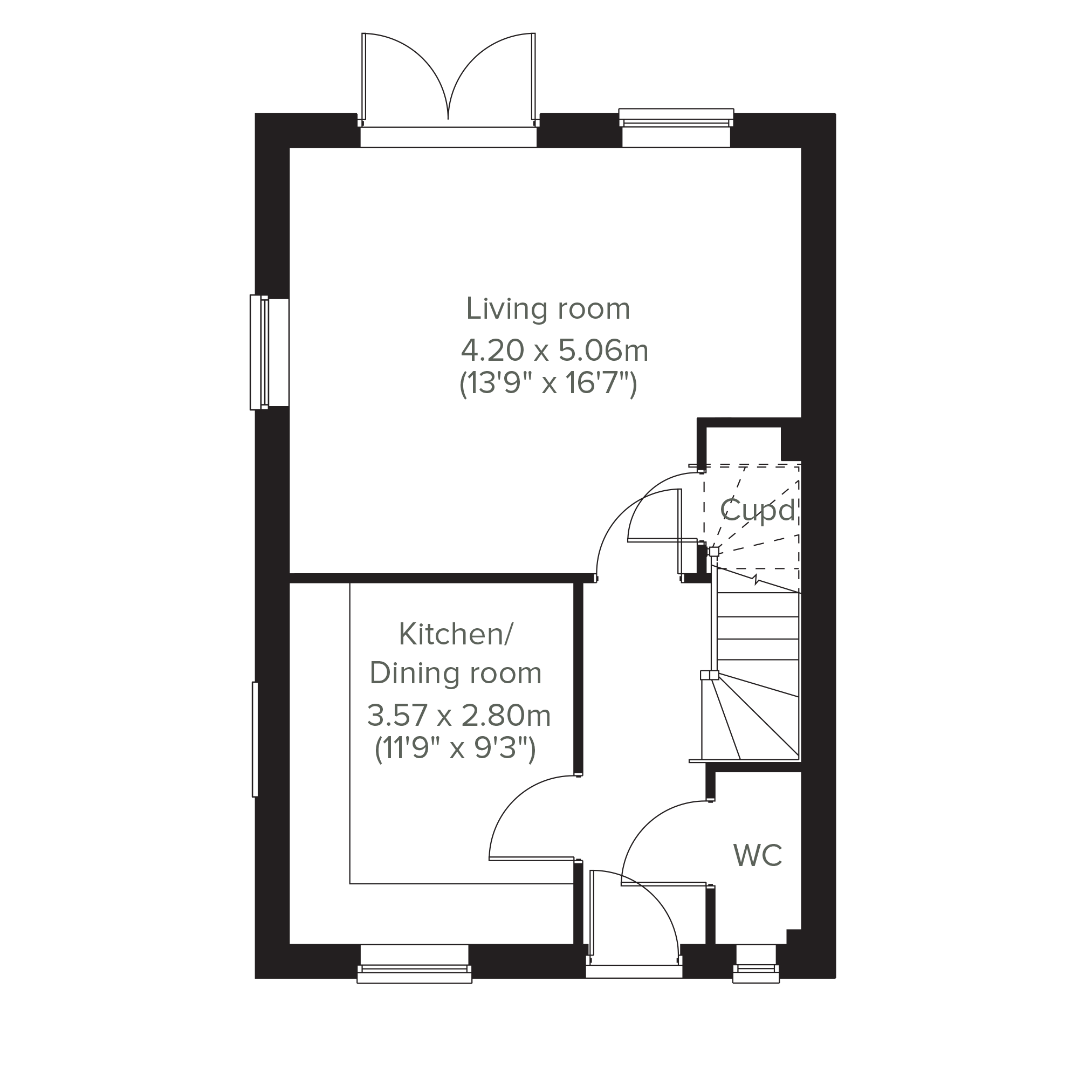 Modern living at its best, the Foxcote is a four-bedroom home ideal for families. It features an open plan kitchen/dining room, a light-filled living room with French doors leading into the garden, plus a handy under-stairs storage cupboard and WC. The first floor has three good-sized bedrooms and the main family bathroom. On the top floor, there`s an impressive bedroom one with an en suite.