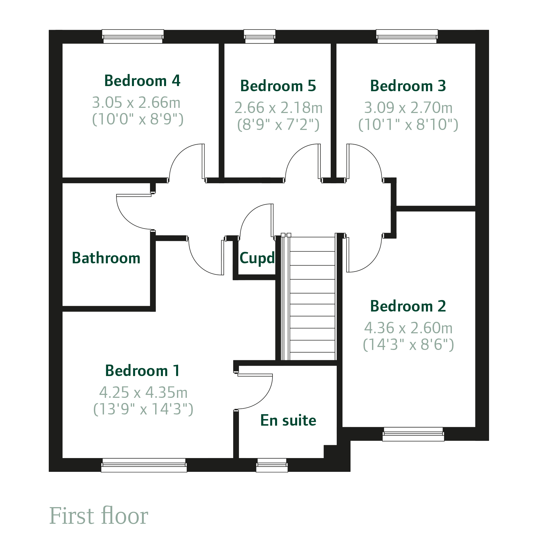 An impressive family home, the Corfe is a five-bedroom detached home that`s perfect for modern living. The stylish open-plan kitchen/family room is ideal for spending time as a family and for entertaining guests. There`s also a well-proportioned living room, separate dining room, downstairs WC and handy utility room with outside access. Upstairs there are five bedrooms - bedroom one with an en suite - a large family-sized bathroom and a handy storage cupboard.