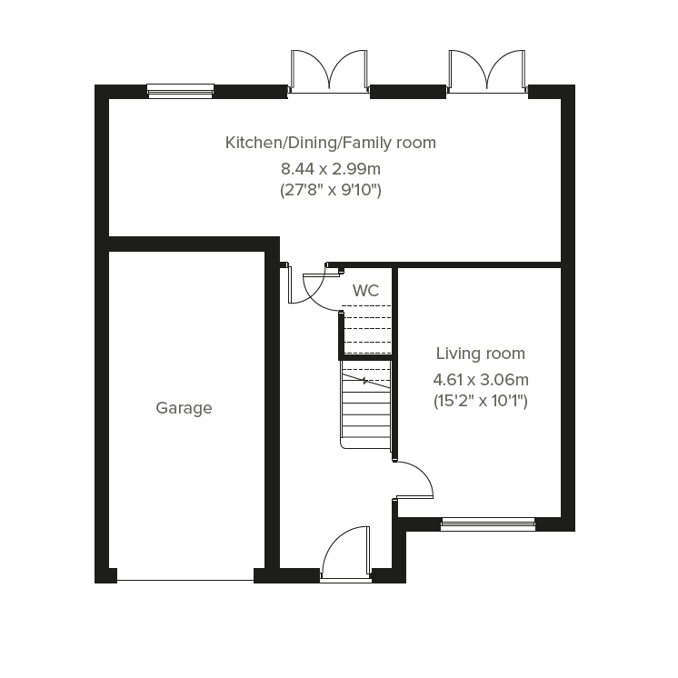 The Warwick is a contemporary five-bedroom detached home offering open plan living. The light and airy kitchen/dining/family room enjoys an open aspect through French doors to the rear garden. Theres a bright front-aspect living room, a downstairs WC, storage cupboard and an adjoining integral garage. Upstairs there are five bedrooms with a spacious bedroom one benefiting from an en-suite, a modern-fitted family bathroom and an additional storage cupboard.