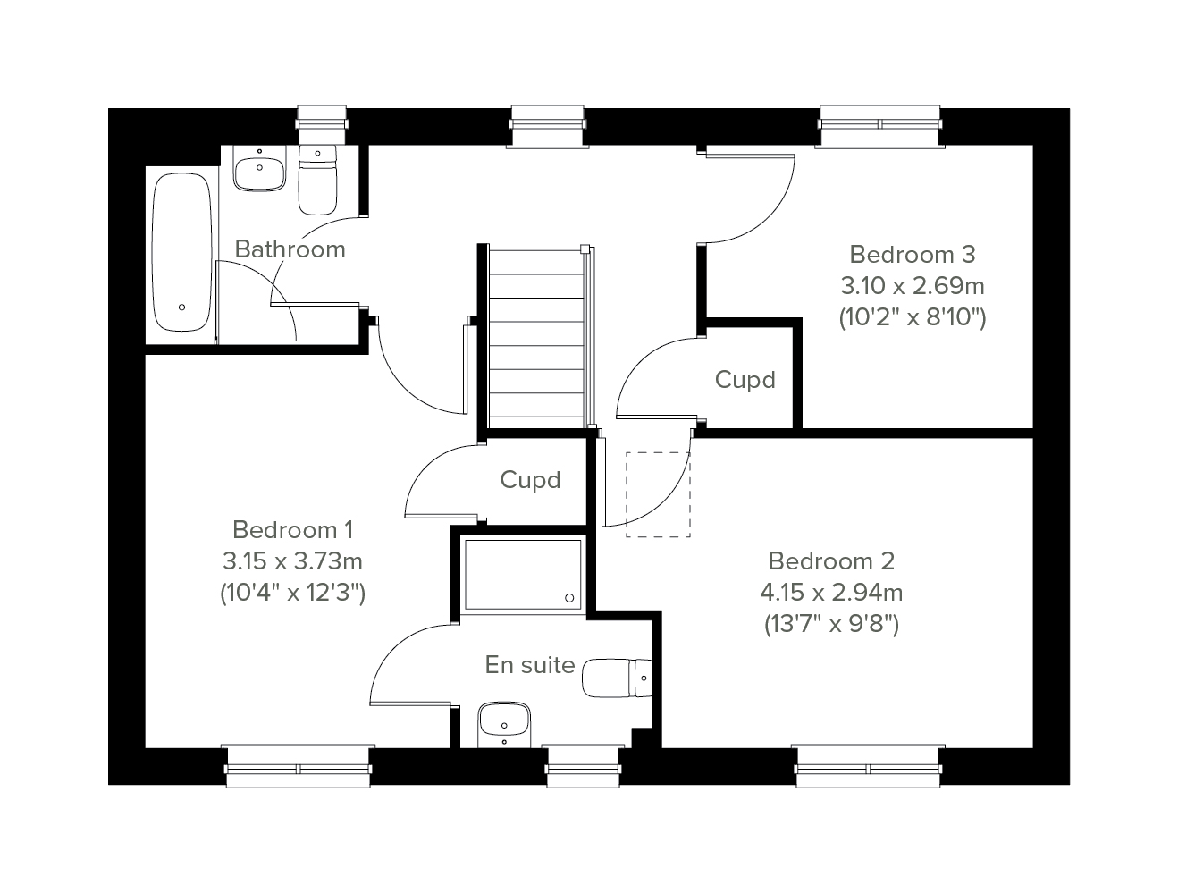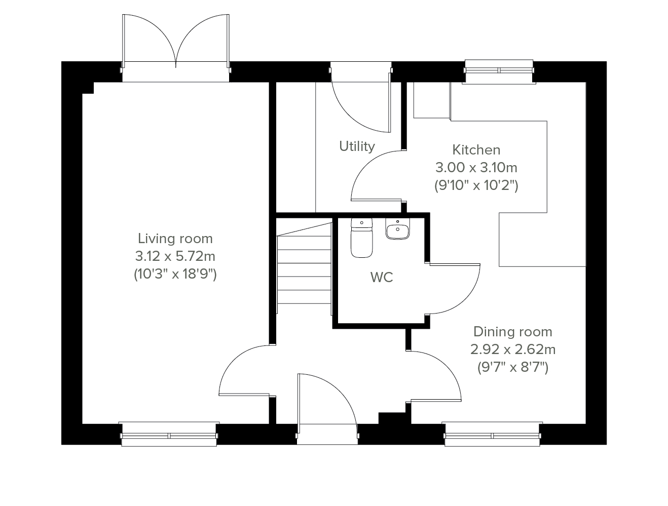 The Awe features a stylish open plan kitchen/dining room, an equally impressive living room with French doors to the garden and a utility room with outside access. There is also a convenient downstairs WC.