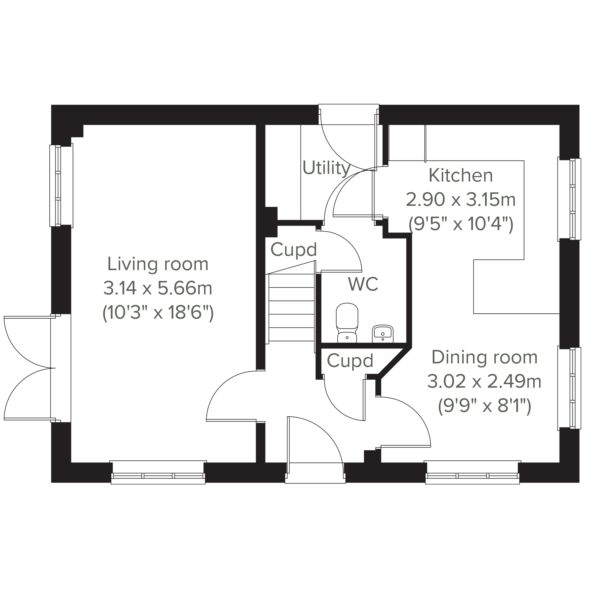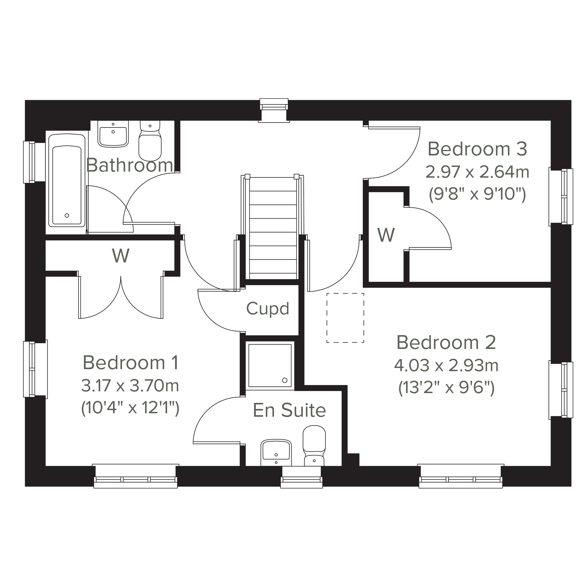 A thoughtfully-designed three-bedroom family home with much to offer, the Barnwood Corner has a bright and modern open-plan kitchen/dining room leading to a handy utility room. The spacious living room has French doors leading into the garden. The inner hallway, downstairs WC and cupboards take care of everyday storage. Plus theres an en suite to bedroom one and a family bathroom.