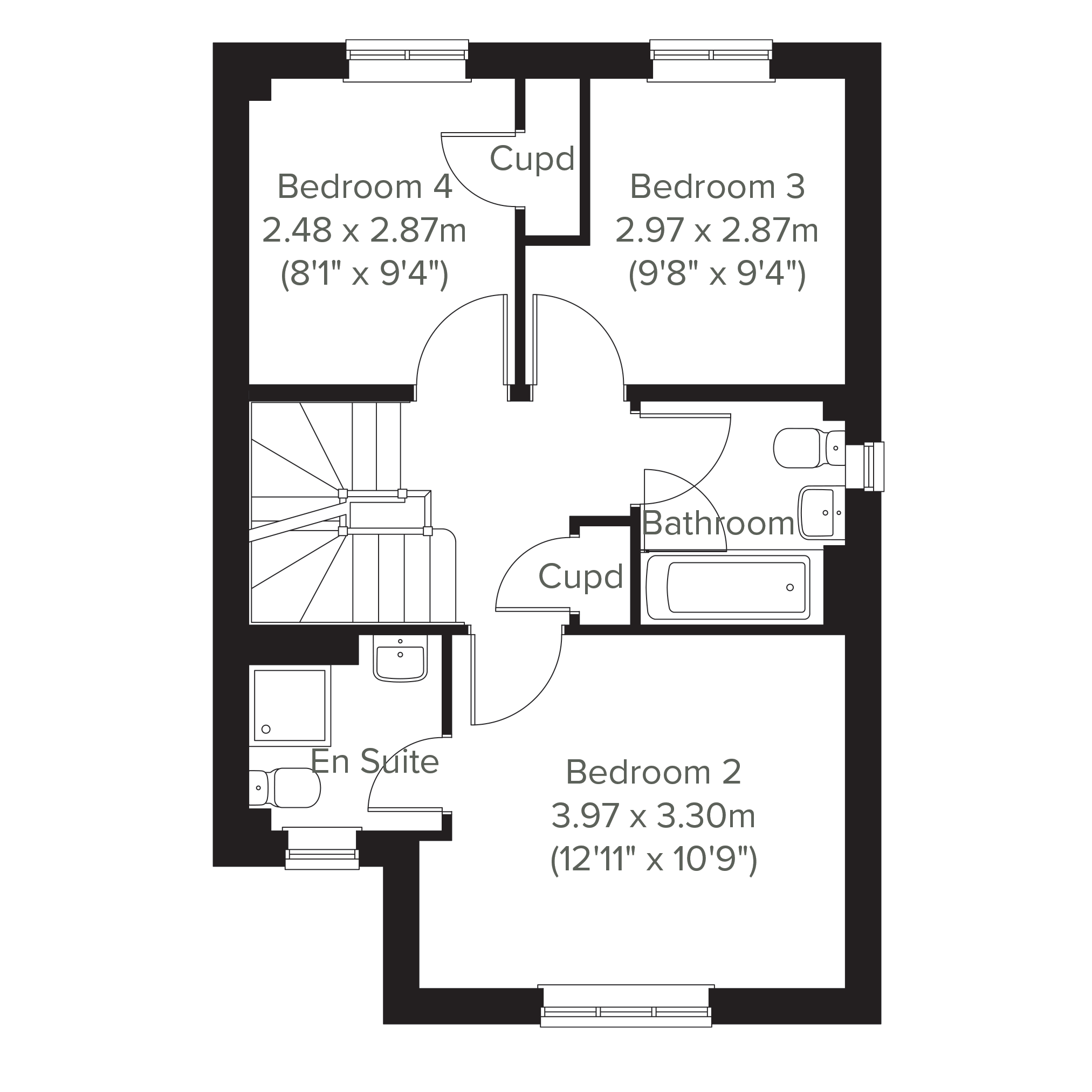 Enjoy the best of modern living in this popular four-bedroom home. The Greenwoods bright front-aspect living room, spacious kitchen/dining room, separate utility room, handy storage cupboard and downstairs WC complete the ground floor. The first floor consists of three bedrooms - bedroom two with an en suite and a family bathroom. On the second floor, bedroom one has an en suite and further storage.